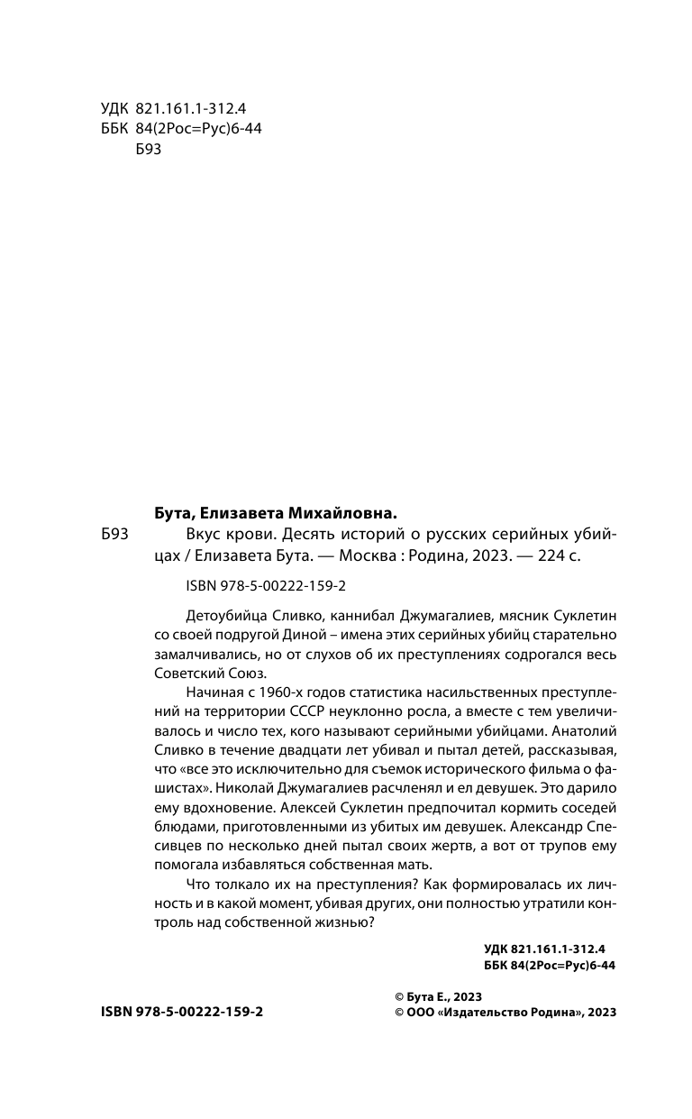 Вкус крови. Десять историй о русских серийных убийцах (Елизавета Бута); Эксмо, 2025