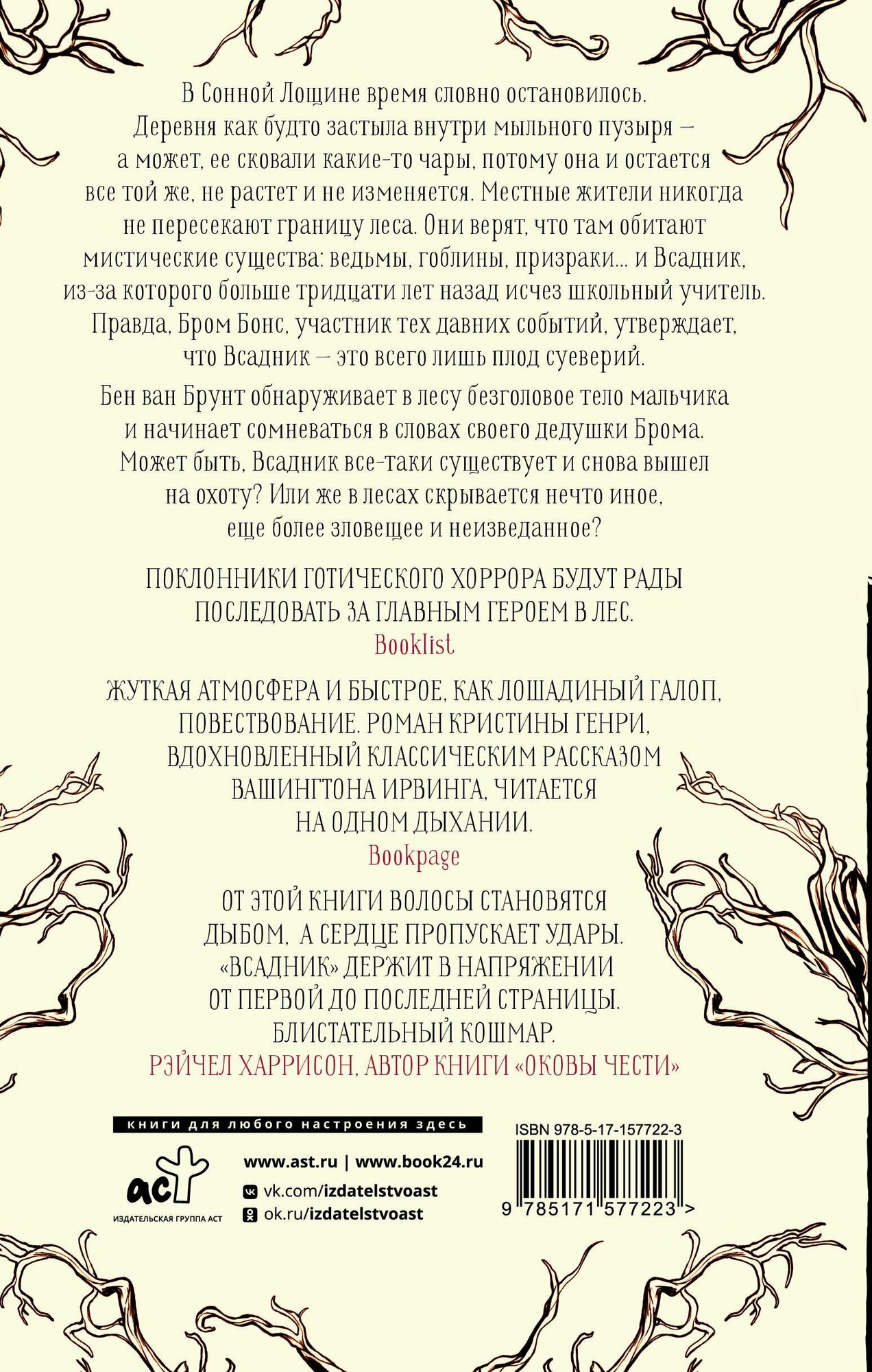 На сегодняшний день товар «Книга: Всадник. Легенда Сонной Лощины (Кристина Генри); Издательство АСТ, 2021» можно купить с кешбеком в 5 магазинах: book24, ЛитРес, Буквоед, Читай-город, Яндекс.Маркет