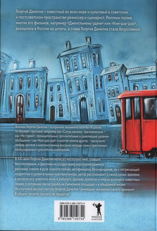 В ХХI веке Георгий Данелия написал несколько книг, ставших бестселлерами, и фактически создал жанр короткометражного рассказа, потому что писал их прежде всего, как кинорежиссер, совсем в духе модного сейчас автофикшена. Без назидания, но с потрясающей мудростью, накопленной за годы жизни и работы в кинематографе, и удивительным чувством юмора, автор рассказывает о своей семье, времени, в котором ему довелось жить и работать, друзьях, коллегах и многих всемирно известных людях, с которыми свела его судьба на съемочной площадке и в обыденной жизни. Не случайно друзья называли Георгия Данелия «умнейшим человеком своего времени». В общем, читайте, скучать не придется!