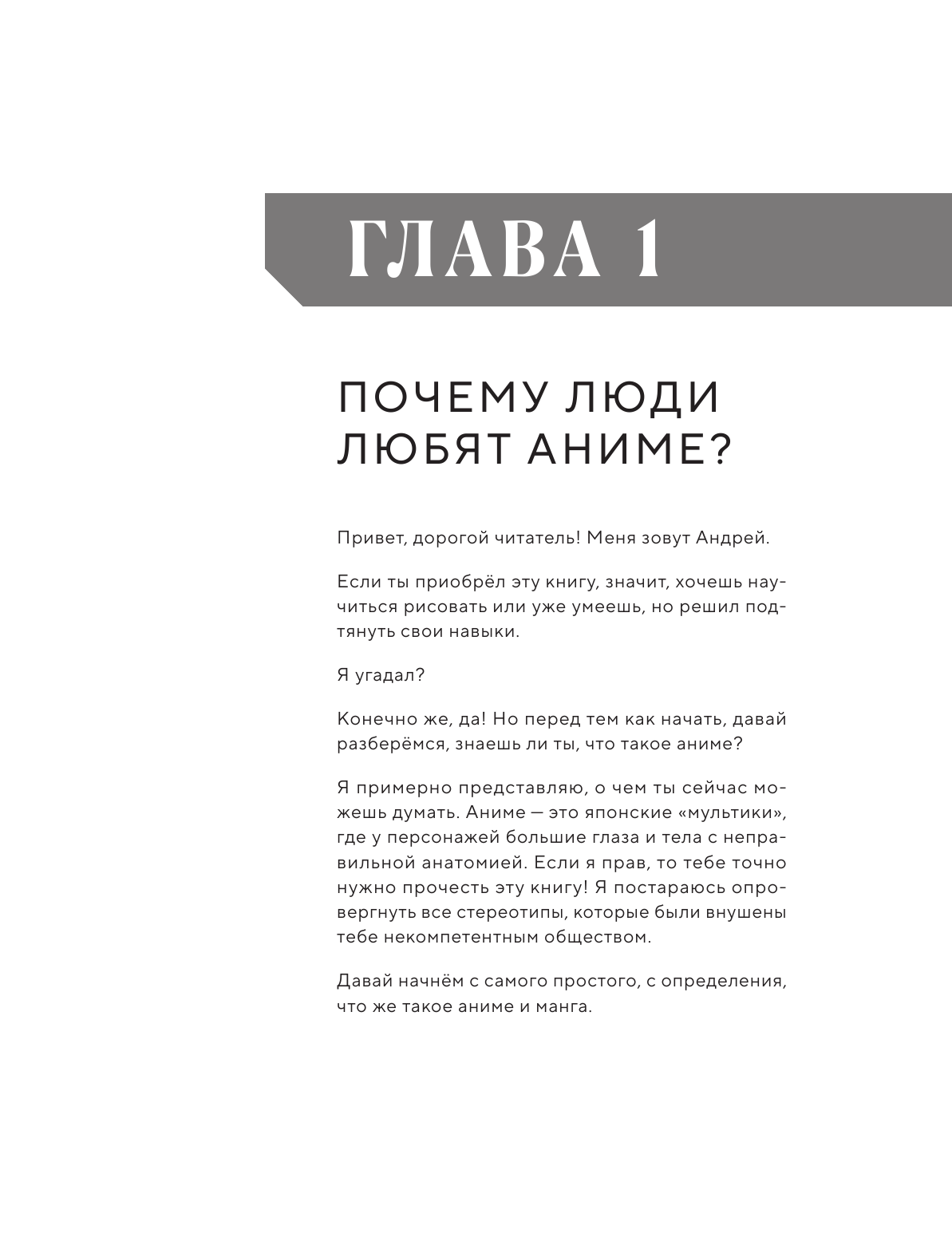 Вместе с автором вы пройдете через 30 пошаговых уроков, которые помогут каждому освоить необходимые техники и приемы, чтобы стать настоящим мангакой. На страницах руководства художник делится своими знаниями о материалах, стилевых особенностях жанров, создании персонажей и выборе их типажа и даже оформлении вашего первого комикса.