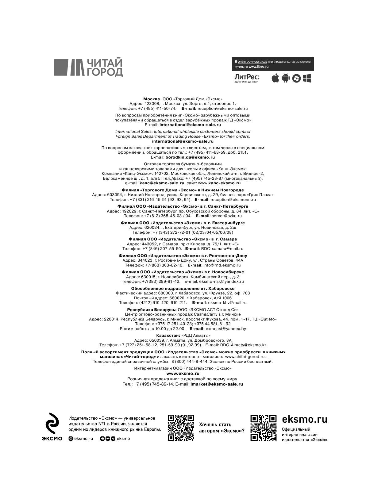 По данным нашего сервиса товар предлагался к продаже в 6 магазинах. На сегодняшний день доступен в 3 магазинах: Буквоед, book24, Яндекс.Маркет. По цене от 717 р. до 799 р., средняя цена составляет 772 р., а самая низкая цена в магазине Яндекс.Маркет. В случае, если для вас на данный момент цена слишком высока, вы можете воспользоваться сервисом «Сообщить о снижении цены» - мы оповестим вас как только цена опустится до желаемого значения. Но будьте внимательны, используя сервис «История цены» можно спрогнозировать в какую сторону изменяется цена, возможно сейчас самое время для покупки.