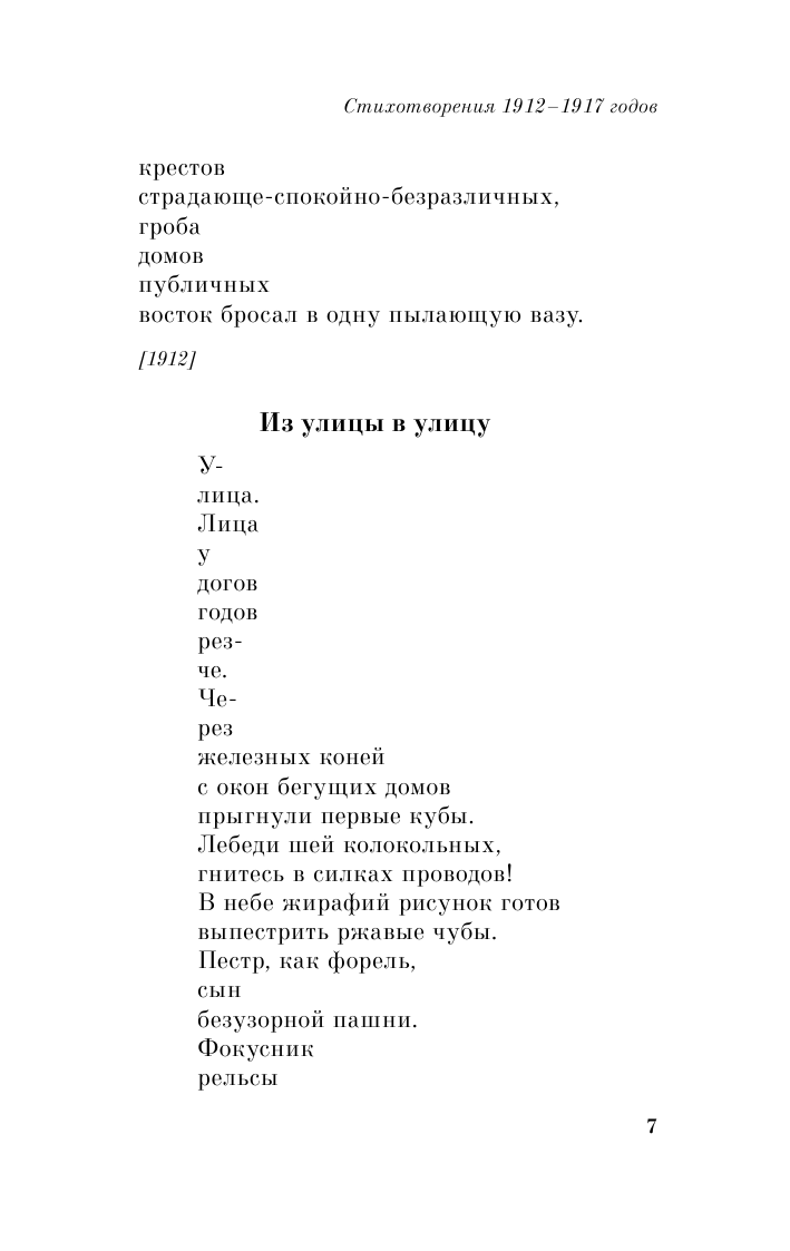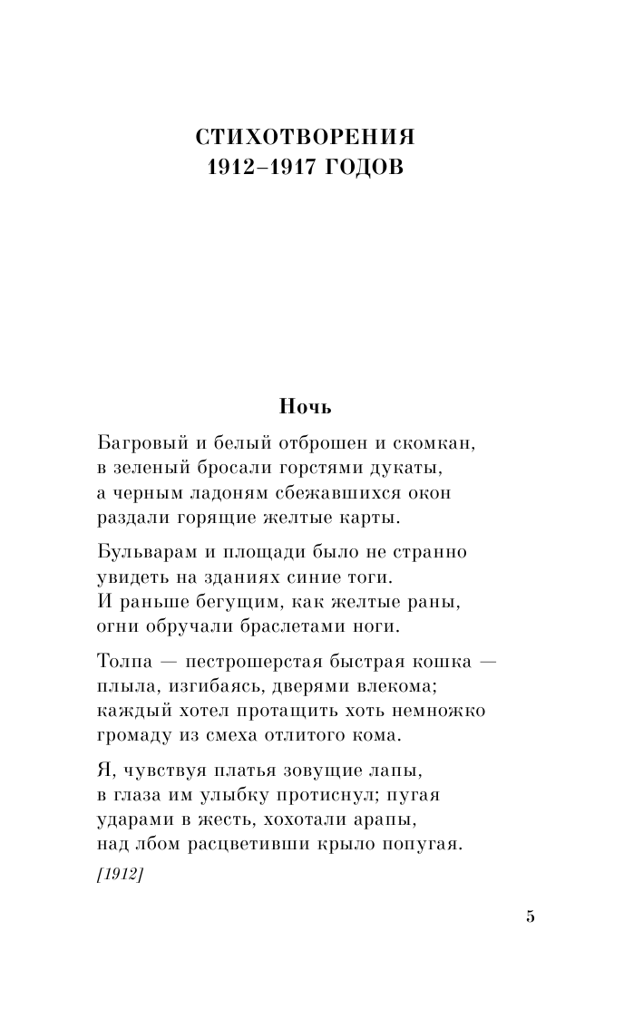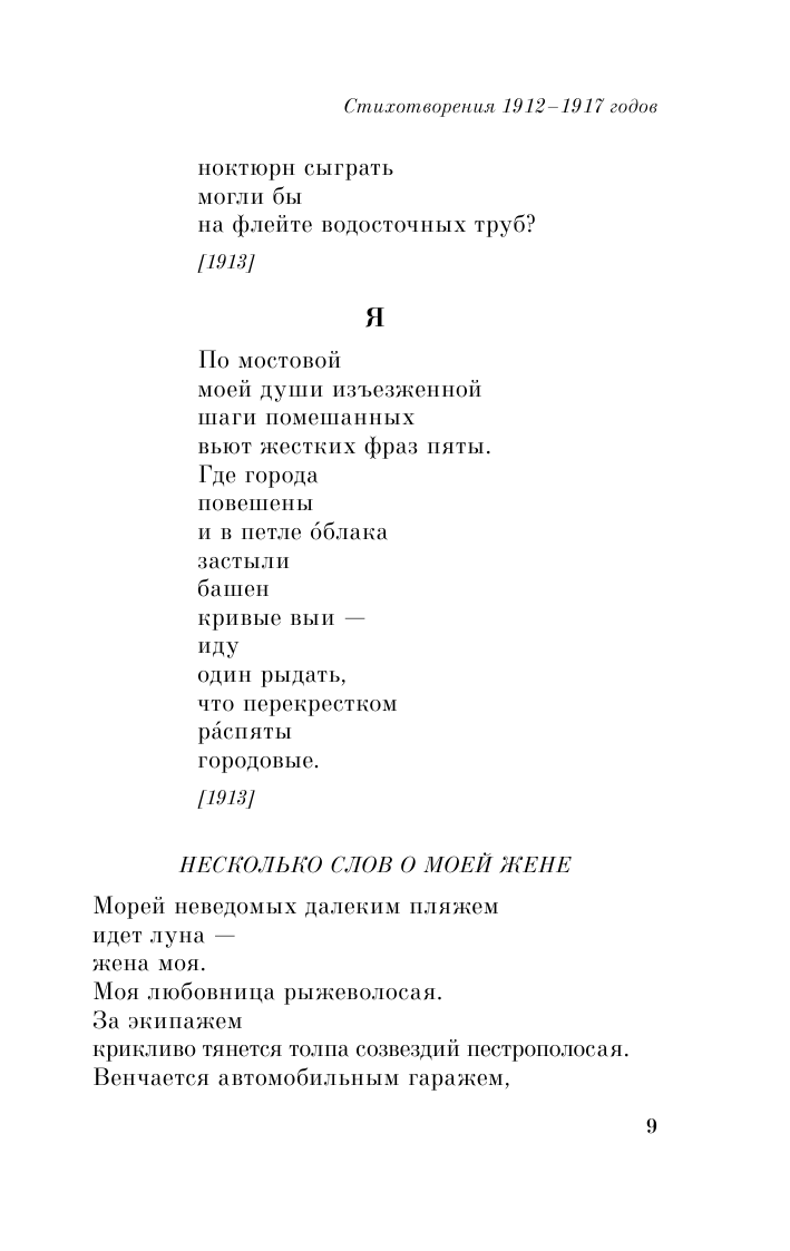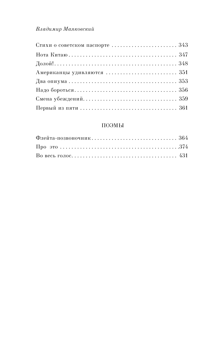Вся его биография отражается в стихах, поэмах, а самые значимые представлены в этом сборнике. Изучая поэзию великого футуриста, читатель становится сопричастным открытиям поэта, чувствует его творческое движение, понимает, какие темы, вопросы, проблемы, препятствия возникали на его пути, и разбирается, как именно Маяковский пытался с ними справиться, переживая трагедию творческой личности, оказавшейся в начале ХХ века в России.