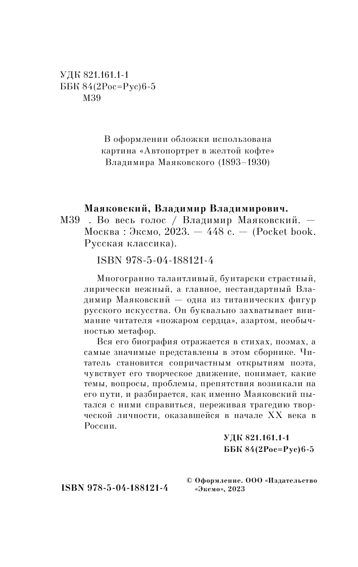 Книга: Во весь голос (Маяковский Владимир Владимирович); ООО "Издательство "Эксмо", 2023