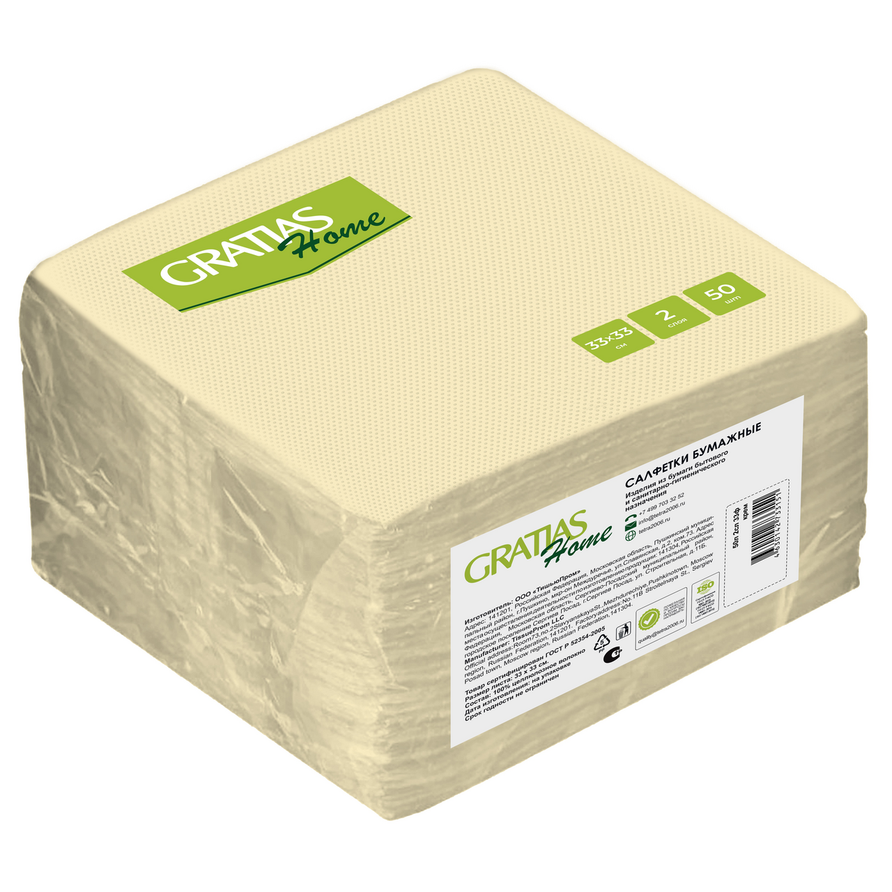 Салфетки бумажные Gratias PushSoft Бежевые 33*33см 2 слоя 50шт ТишьюПром (размер: 33 x 33 см)