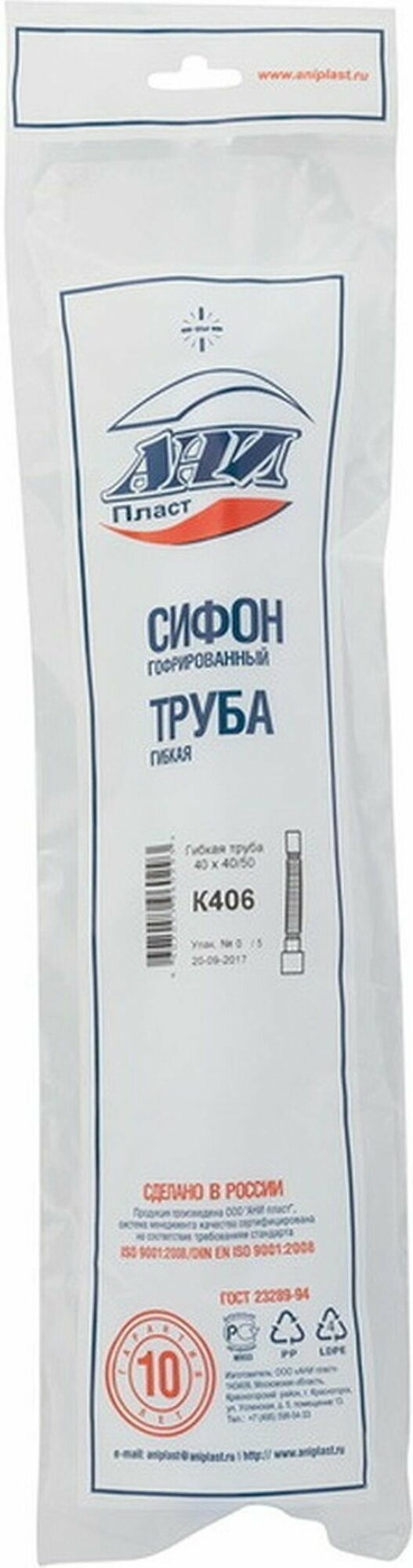| Вид сифона | гофрированный |