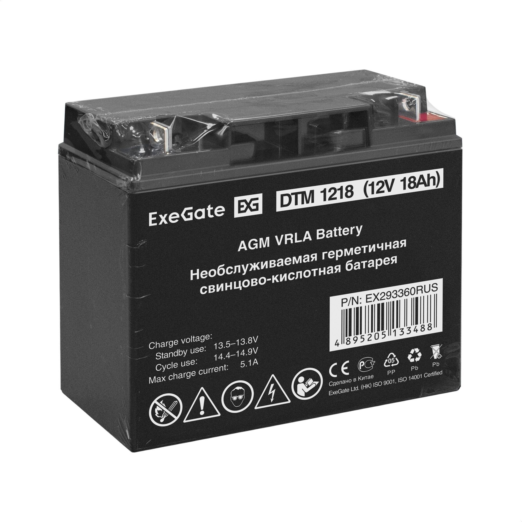 Батарея аккумуляторная Exegate EX293360RUS (12V 18Ah клеммы F3 (болт М5 с гайкой)) DTM 1218