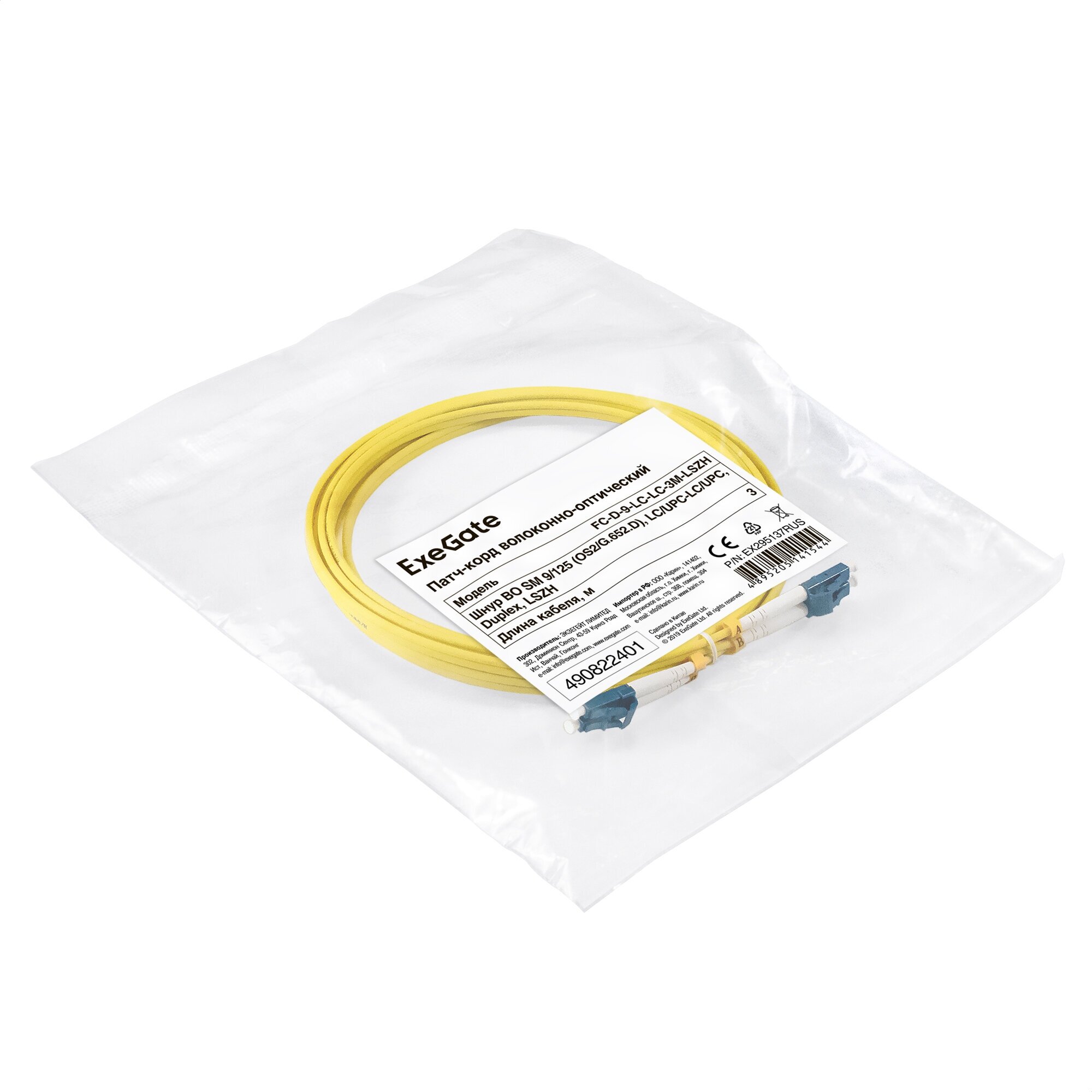 Патч-корд волоконно-оптический ExeGate (Шнур ВО SM 9/125 (OS2/G.652.D), LC/UPC-LC/UPC, Duplex, LSZH, 3м)