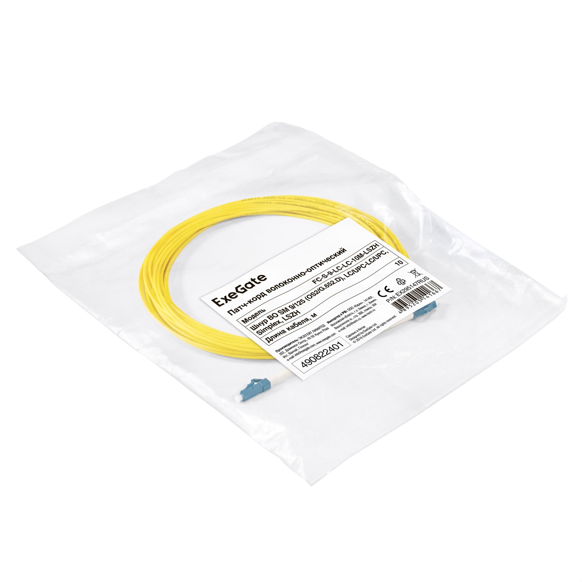 Патч-корд волоконно-оптический ExeGate (Шнур ВО SM 9/125 (OS2/G.652.D), LC/UPC-LC/UPC, Simplex, LSZH, 10м)