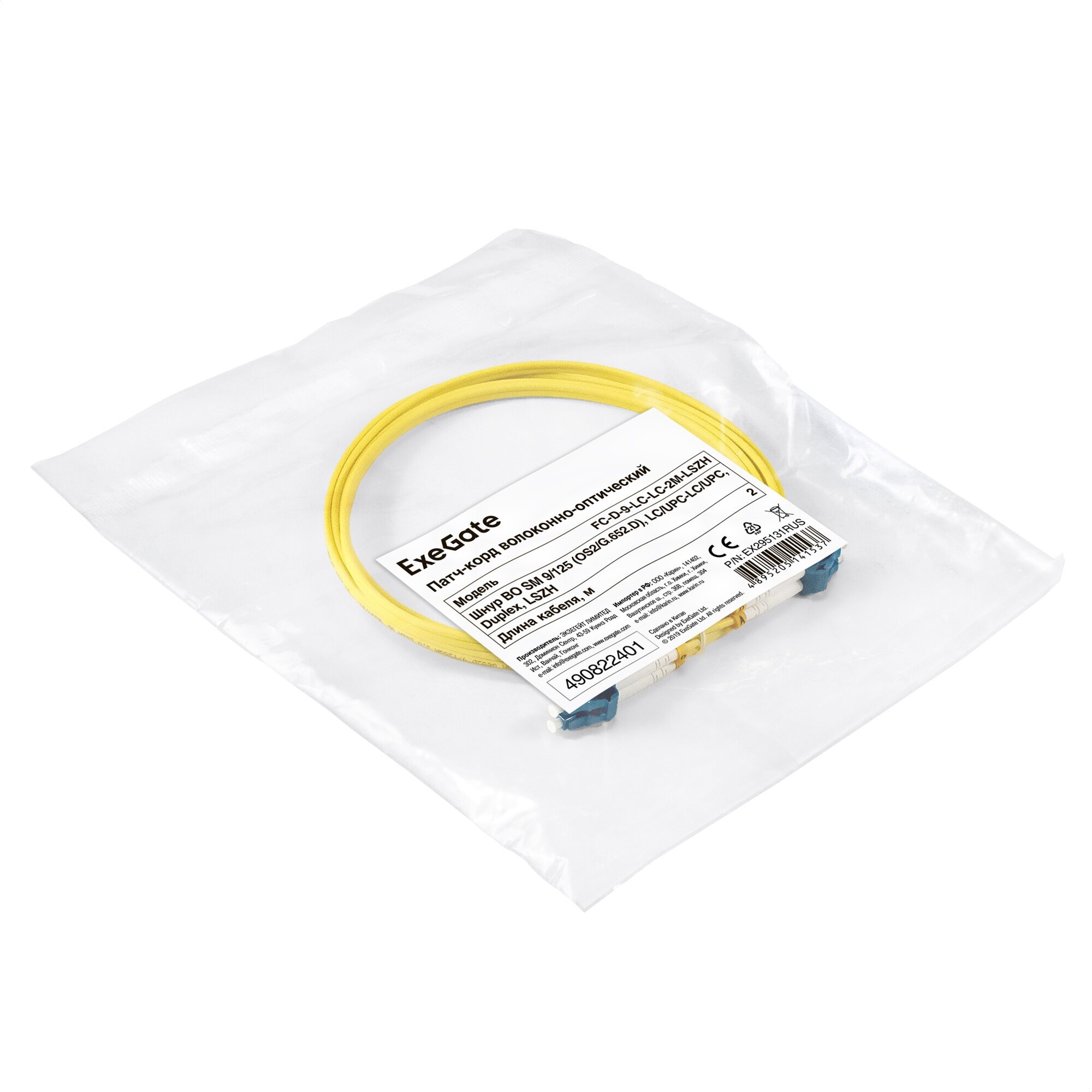 Патч-корд волоконно-оптический ExeGate (Шнур ВО SM 9/125 (OS2/G.652.D), LC/UPC-LC/UPC, Duplex, LSZH, 2м)