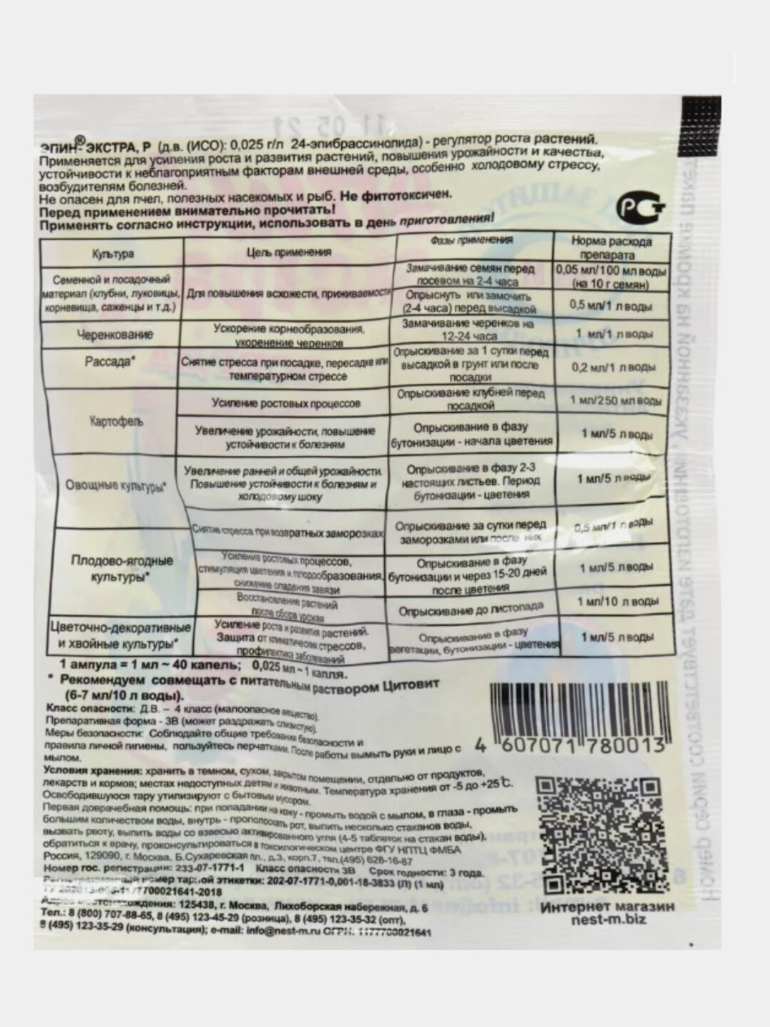 Эпин - экстра - препарат системного действия, содержащий высокоочищенный 24-эпибрассинолид, синтезированный по специальной технологии. Срок действия раствора - 10-12 дней.