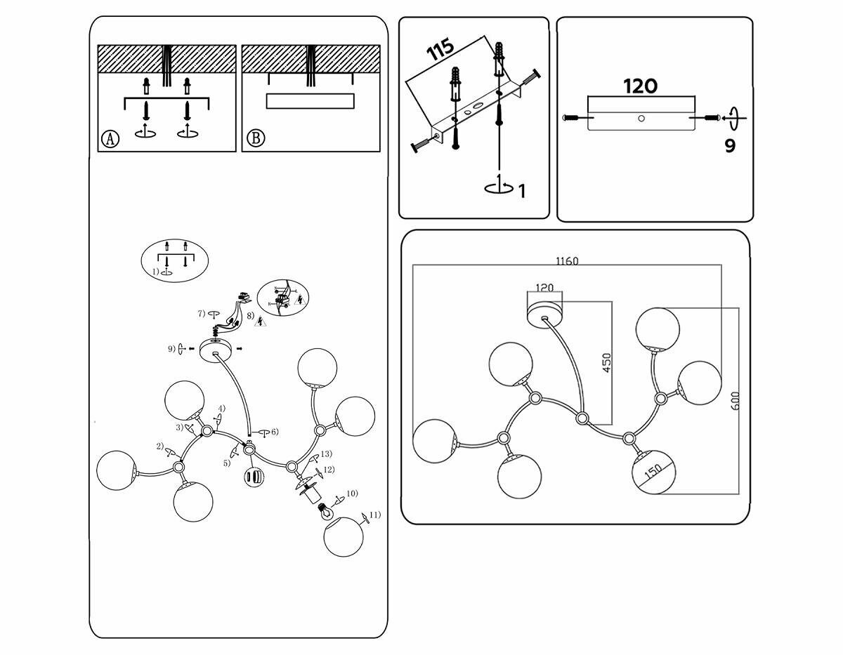 | Номенклатура | TR2552/6 WH/BK белый/черный E27/6 max 60W 1160*600*450 |