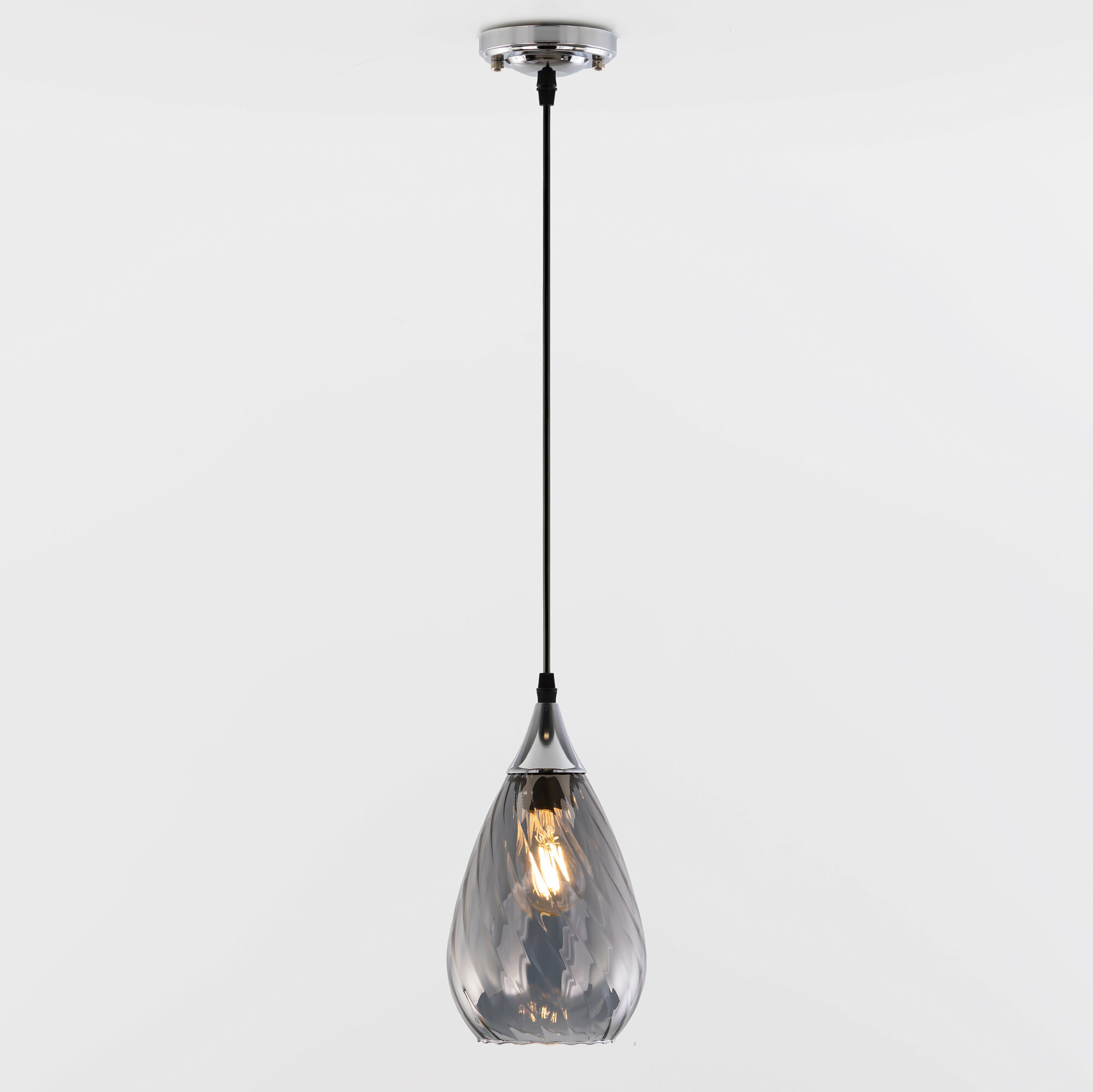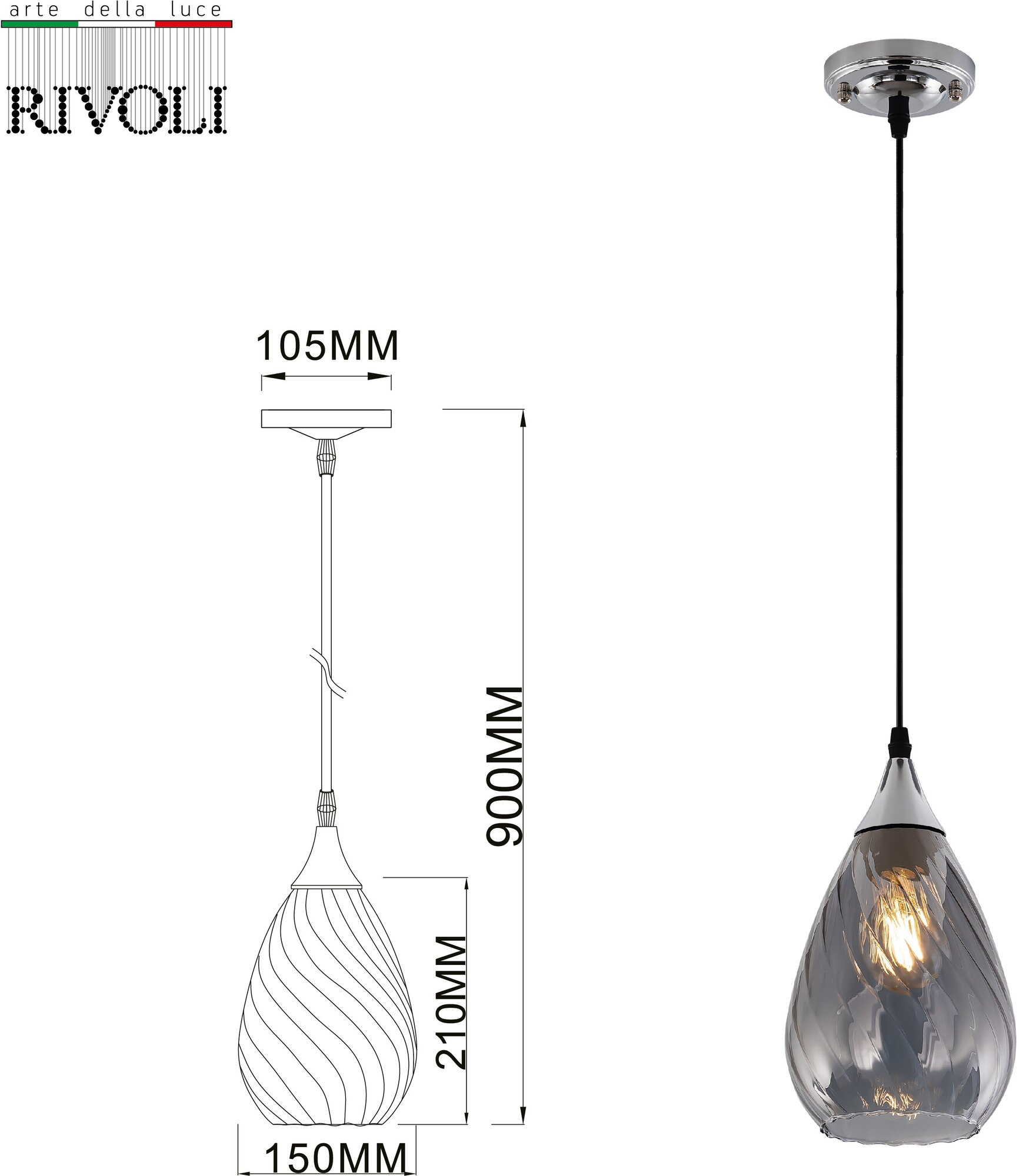 Rivoli Lily - подвесной светильник с хромированным металлическим основанием и 1 фигурным плафоном из дымчатого стекла. Светильники потолочные подвесные Lily созданы итальянским брендом Rivoli в популярном стиле модерн. Стекло плафонов закалено. Такие подвесные светильники станут превосходным решением для размещения над столом или барной стойкой. Высоту троса плафона можно отрегулировать при монтаже. Если вы ищете подвесные светильники для кухни или подвесные светильники в прихожую, стоит заказать эту оригинальную стильную модель. Lily Rivoli - подвесные светильники на надежных тросах. Рекомендуемые источники света - Е27 мощностью 40Вт. Один светильник подвесной Lily хорошо подсвечивает площадь 3 м2. Дымчатый стеклянный плафон в форме капли смягчают яркость светового потока, делая освещение комфортным для глаз.