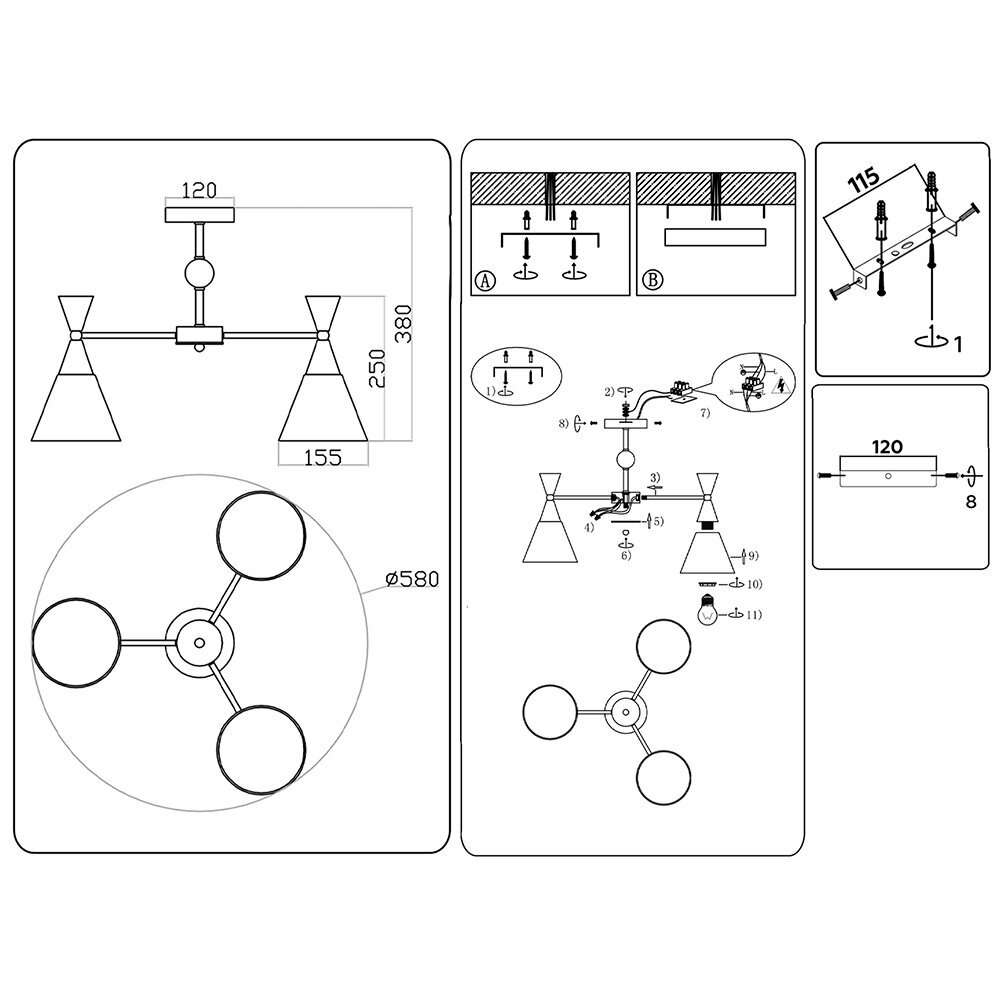 | Количество плафонов | 3 |
