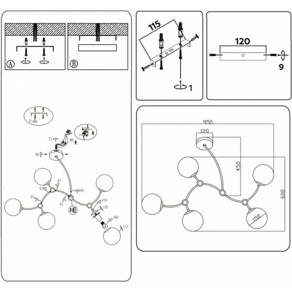 | Номенклатура | TR2546/5 WH/BK белый/черный E27/5 max 60W 950*600*450 |