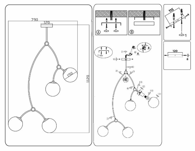 | Номенклатура | TR2572/4 WH/BK белый/черный E27/4 max 60W D790*1120 |