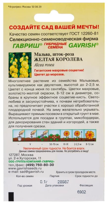 Модель: Семена Гавриш Мальва Желтая королева 0.1 г