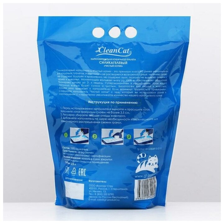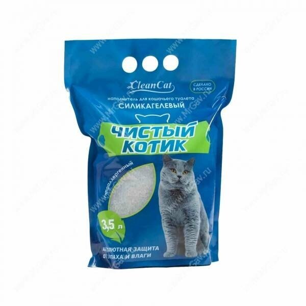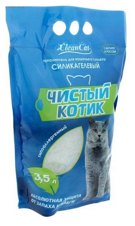 Силикагелевый наполнитель "Чистый котик" не пылит, не прилипает к шерсти животного и не разносится по дому.
