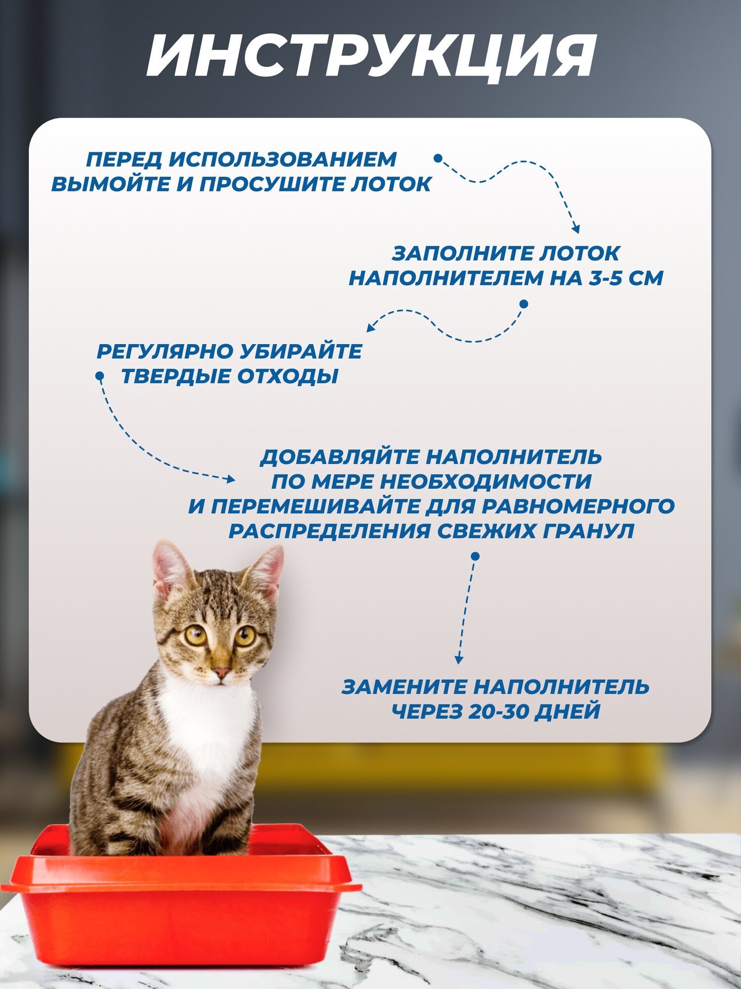 Силикагелевый наполнитель "Чистый котик" не пылит, не прилипает к шерсти животного и не разносится по дому.