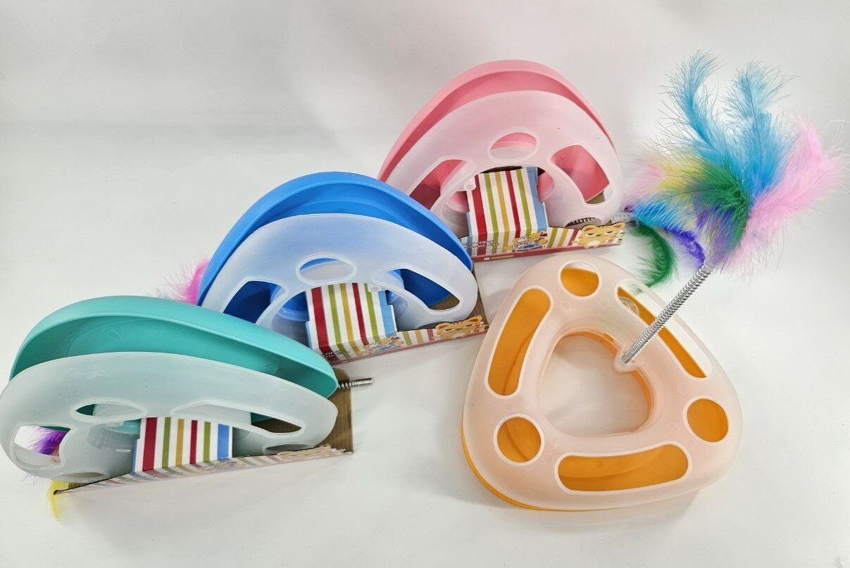Игрушка для кошек представляет собой четырёхуровневую башню с 4 разноцветными мячами. Кошка, пытаясь лапкой достать шарики, приводит их в движение, затем снова и снова повторяет это. Изготовлена из высокопрочного качественного пластика, устойчива к повреждениям, укусам, царапинам и абсолютно безопасна для домашних питомцев. Не содержит мелких деталей, веревок, перьев, которыми кошка может подавиться. Такая игрушка стимулирует двигательную активность, позволяя поддерживать домашних животных в отличной физической форме. Мячи невозможно потерять, что позволит спокойно оставлять питомцев играть одних. Такая игрушка отличный способ для питомца выплеснуть энергию и обточить коготки. Играть может сразу несколько кошек.За счет прорезиненных ножек башня устойчиво стоит на полу. В меру шумное развлечение не потревожит хозяев четвероного друга, даже если любимец решит поиграть ночью.