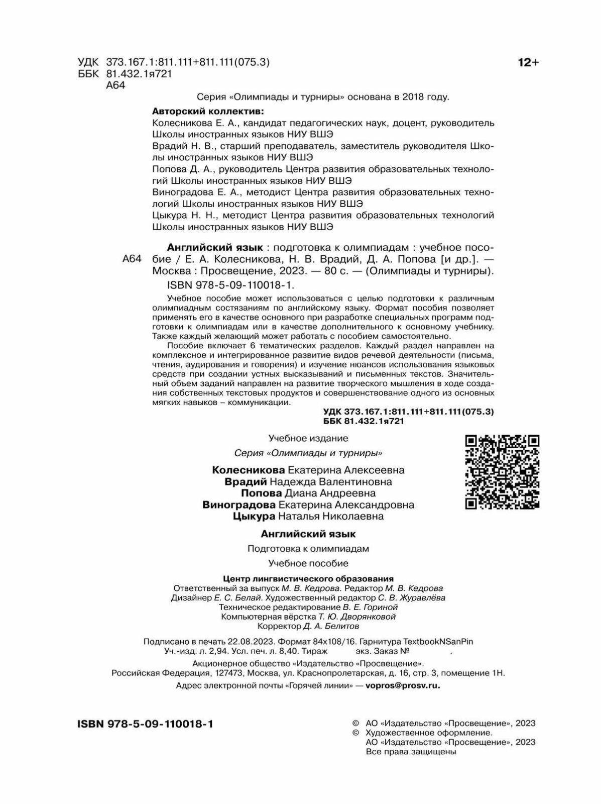Английский язык. Подготовка к олимпиадам (Екатерина Алексеевна Колесникова, Диана Андреевна Попова, Надежда Валентиновна Врадий); Просвещение, 2023