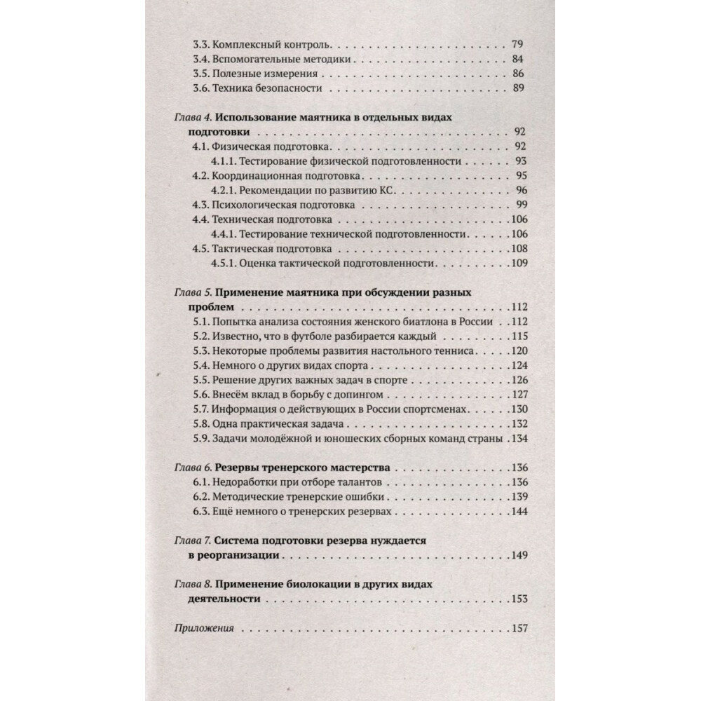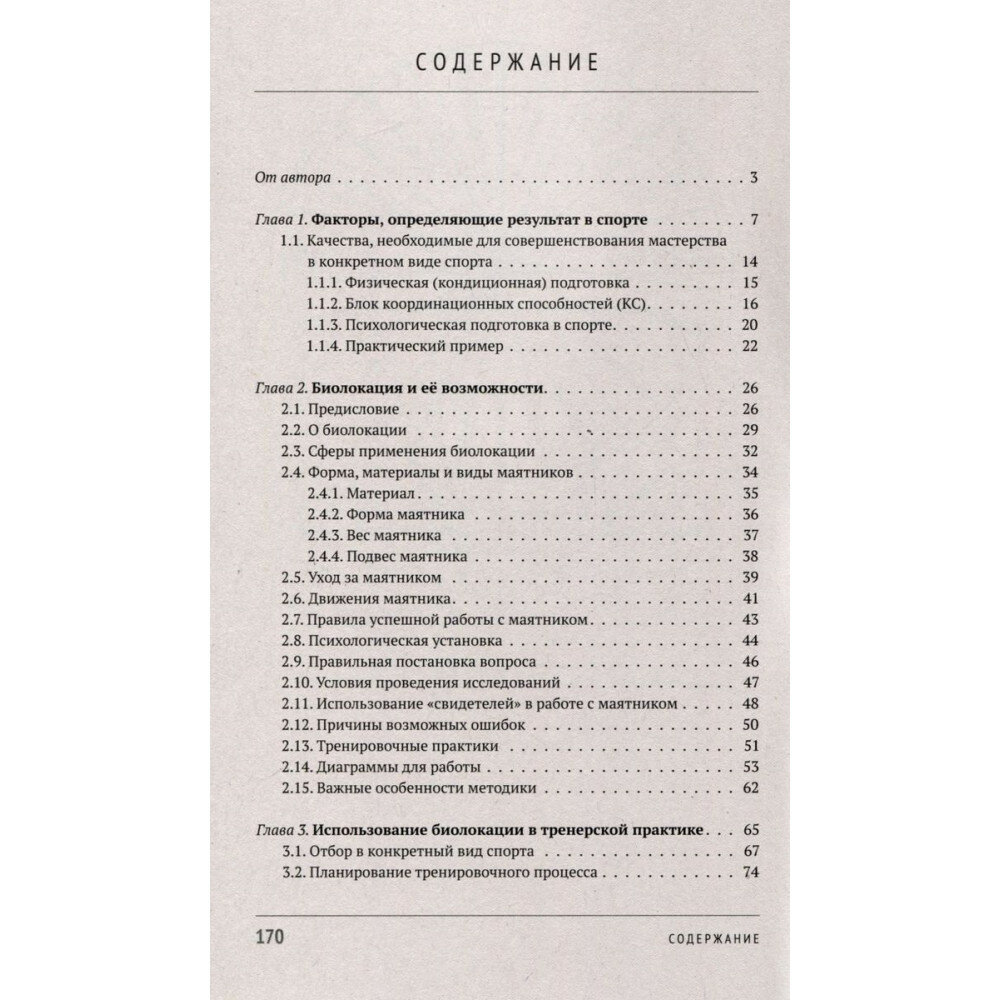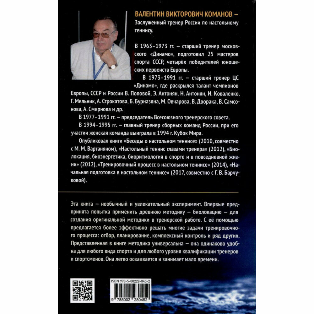 Эта книга - необычный и увлекательный эксперимент. Впервые предпринята попытка применить древнюю практику - биолокацию - для создания оригинальной методики в тренерской деятельности. Предлагается с её помощью более эффективно решать многие задачи тренировочного процесса: это и проблемы отбора, и задачи планирования, и осуществление комплексного контроля, и ряд других важных функций в работе тренера. Представленная здесь методика универсальна - она одинаково удобна для любого вида спорта и для любого уровня квалификации тренеров и спортсменов. Она легко осваивается и занимает немного времени. Более того, методы, описанные в книге, можно также широко применять во всех направлениях повседневной жизнедеятельности человека. Автор ни в коем случае не призывает заменить традиционную теорию спорта на нечто иное. Наоборот, он убеждён, что спортивную науку надо максимально совершенствовать и развивать.