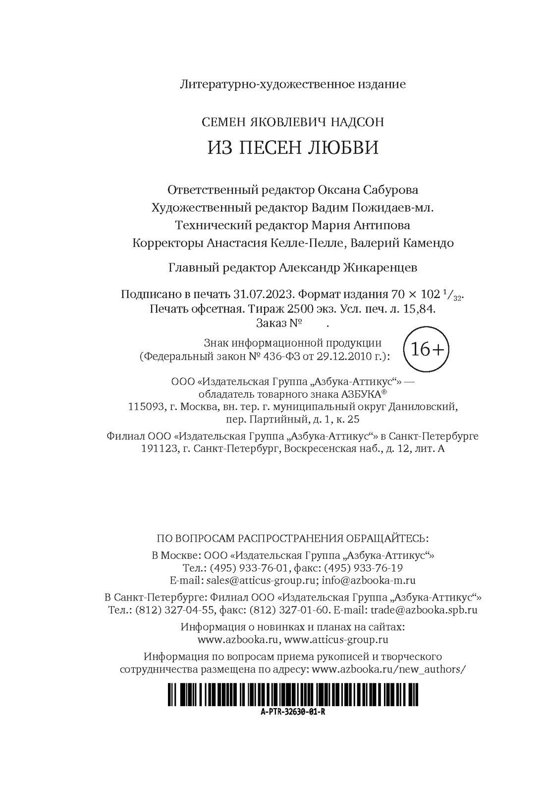Книга: Из песен любви (Надсон Семен Яковлевич); Азбука, 2023