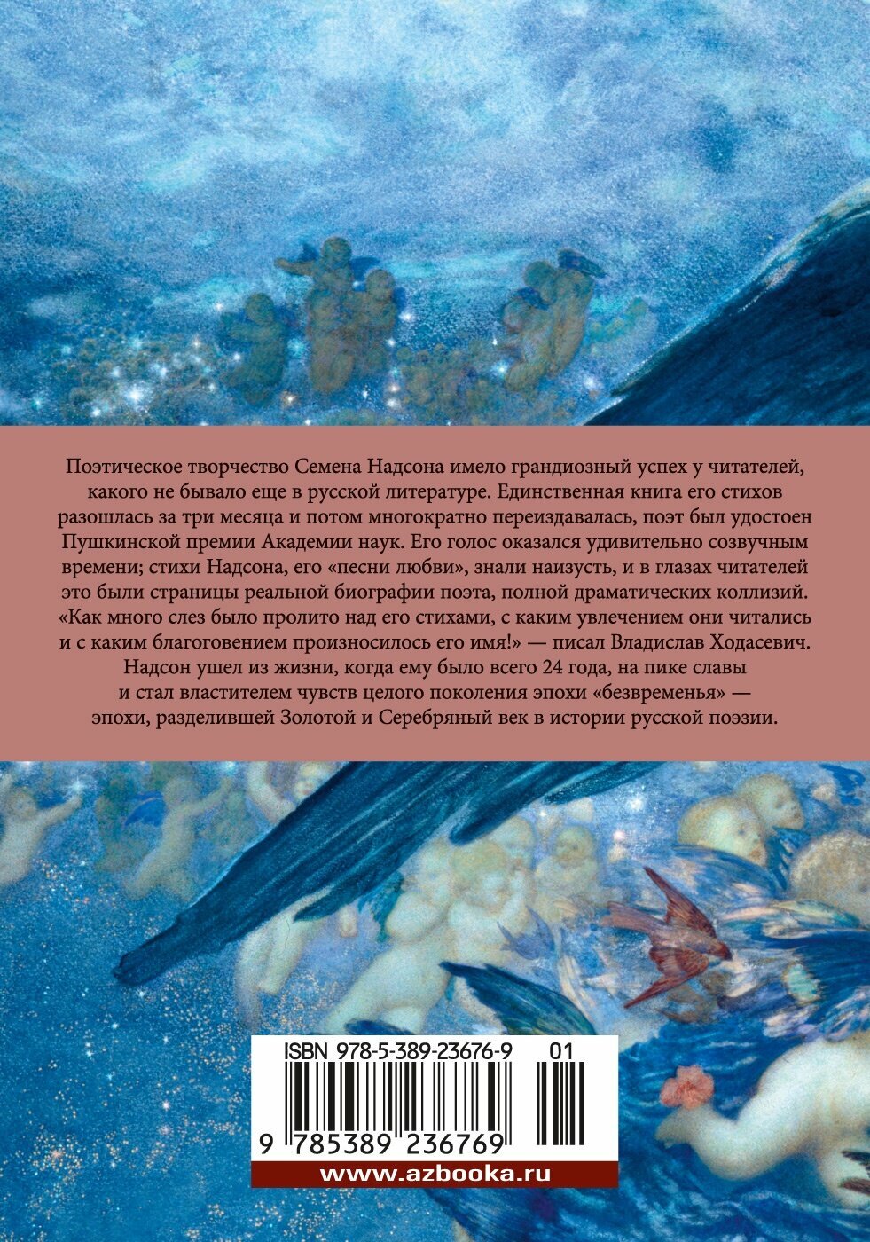 Поэтическое творчество Семена Надсона имело грандиозный успех у читателей, какого не бывало еще в русской литературе. Единственная книга его стихов разошлась за три месяца и потом многократно переиздавалась, поэт был удостоен Пушкинской премии Академии наук. Его голос оказался удивительно созвучным времени; стихи Надсона, его «песни любви», знали наизусть, и в глазах читателей это были страницы реальной биографии поэта, полной драматических коллизий (ранняя смерть родителей, а затем и смерть возлюбленной, тяжелая болезнь самого поэта, его поэтический триумф и клеветническая травля со стороны литературных недругов). «Как много слез было пролито над его стихами, с каким увлечением они читались и с каким благоговением произносилось его имя!» — писал Владислав Ходасевич. Надсон ушел из жизни, когда ему было всего 24 года, на пике славы и стал властителем чувств целого поколения эпохи «безвременья» — эпохи, разделившей Золотой и Серебряный век в истории русской поэзии.