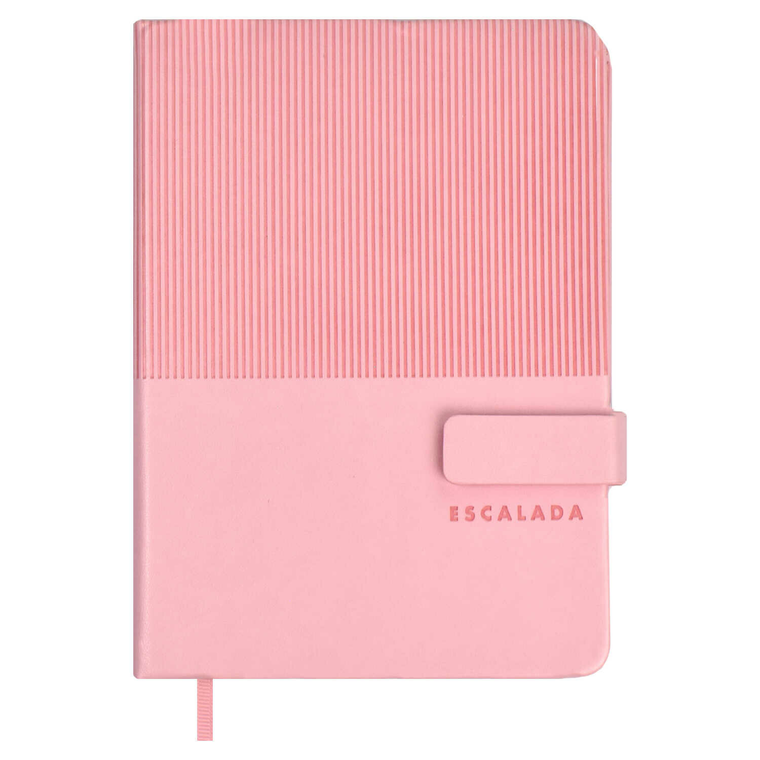 Ежедневник недатированный ESCALADA, формат А6+ (126х174 мм), 120 л. Обложка: твёрдый переплёт, блинтовое тиснение, нет, скруглённый корешок, закруглённые углы обложки. Внутренний блок: ниткошвейный, кремовый офсет 70 г/м?, печать в одну краску (линия), закруглённые углы блока, нет, есть. Красочность форзаца: печать пантоном. Закладка: одно ляссе. есть. Особенности: застёжка "магнитный клапан". Индивидуальная упаковка: ПЭТ-пакет.