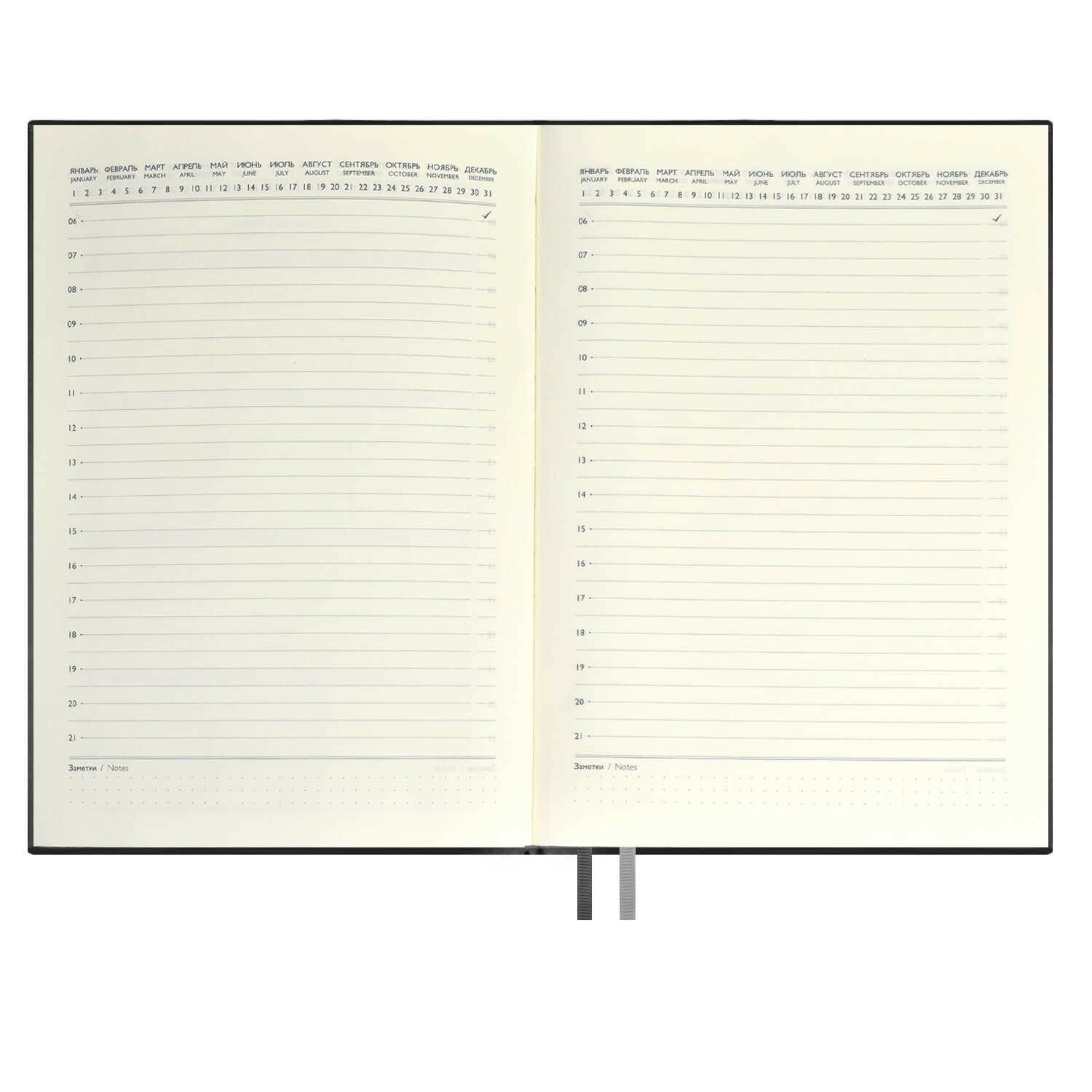 Ежедневник недатированный ESCALADA, формат А4 (210х297 мм), 160 л. Обложка: мягкий переплёт, запаянный край, блинтовое тиснение, нет, скруглённый корешок, прямые углы обложки. Внутренний блок: ниткошвейный, кремовый офсет 70 г/м?, печать в одну краску (линия), прямые углы блока, нет, есть. Красочность форзаца: печать пантоном. Отделка среза: окрашивание пантоном. Закладка: два ляссе. есть. Индивидуальная упаковка: ПЭТ-пакет.