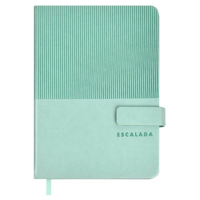 Ежедневник недатированный ESCALADA, формат А6+ (126х174 мм), 120 л. Обложка: твёрдый переплёт, блинтовое тиснение, нет, скруглённый корешок, закруглённые углы обложки. Внутренний блок: ниткошвейный, кремовый офсет 70 г/м?, печать в одну краску (линия), закруглённые углы блока, нет, есть. Красочность форзаца: печать пантоном. Закладка: одно ляссе. есть. Особенности: застёжка "магнитный клапан". Индивидуальная упаковка: ПЭТ-пакет.