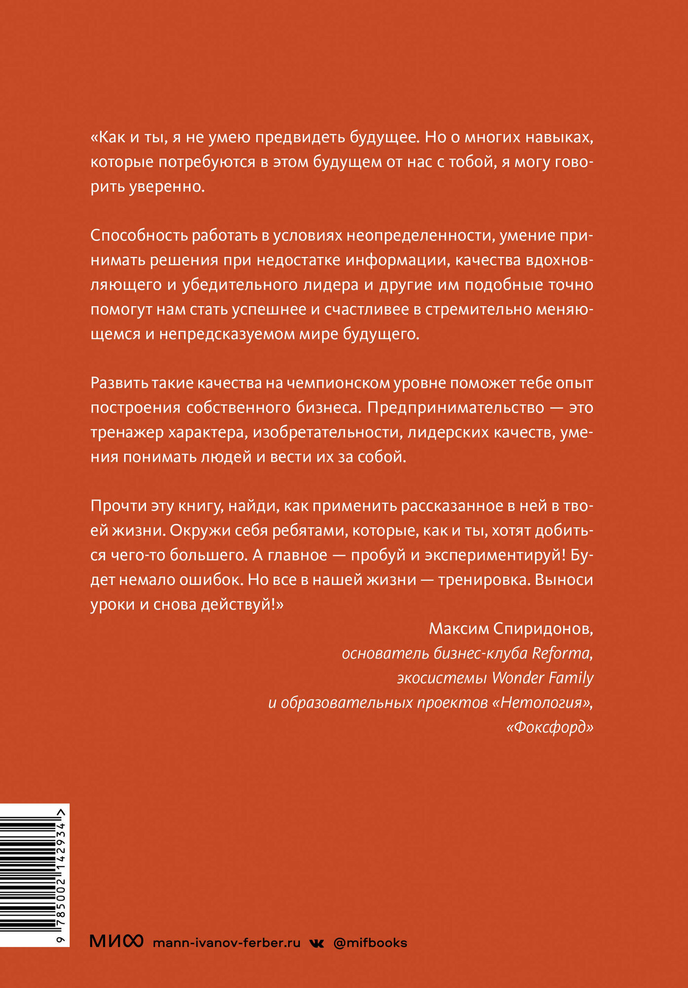 Есть ли у тебя задатки предпринимателя? Не рано ли задумываться о своем деле, если ты пока еще учишься в школе? С чего начать, если хочешь зарабатывать сам? Эта книга — маршрут из десяти шагов, которые приведут тебя из точки А — "хочу свой бизнес", в точку Б — "зарабатываю на своем деле". Тебя ждут вопросы для размышлений, разбор реальных кейсов и советы от крутого бизнес-наставника, которые помогут тебе: ? понять свои сильные стороны; ? найти идею для бизнеса и придумать интересный продукт; ? научиться работать в команде; ? разложить по полочкам финансовые вопросы. Разработай собственный маршрут для развития своего первого дела. Удачного старта и до встречи на обложке Forbes!