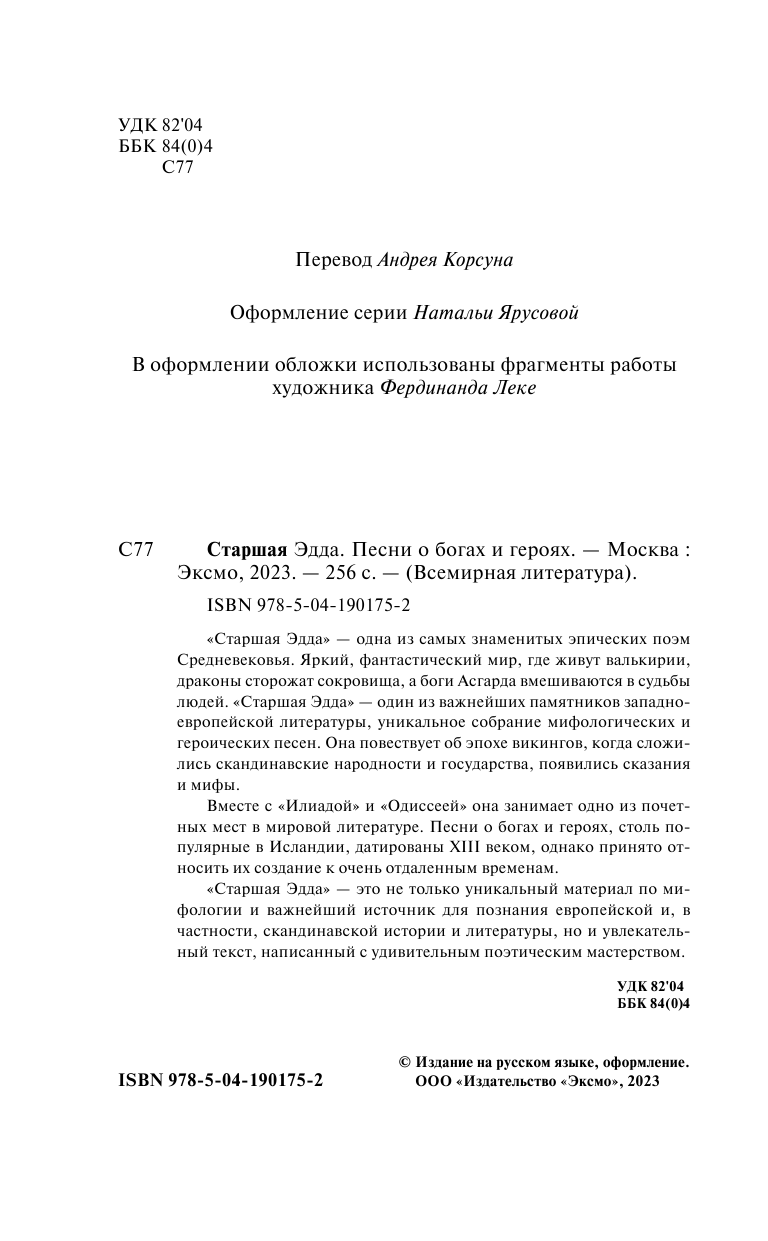 Сервис сравнения цен СкидкаГИД предлагает сравнить цены на товар «Книга: Старшая Эдда. Песни о богах и героях (Корсун А.); ООО "Издательство "Эксмо", 2023»