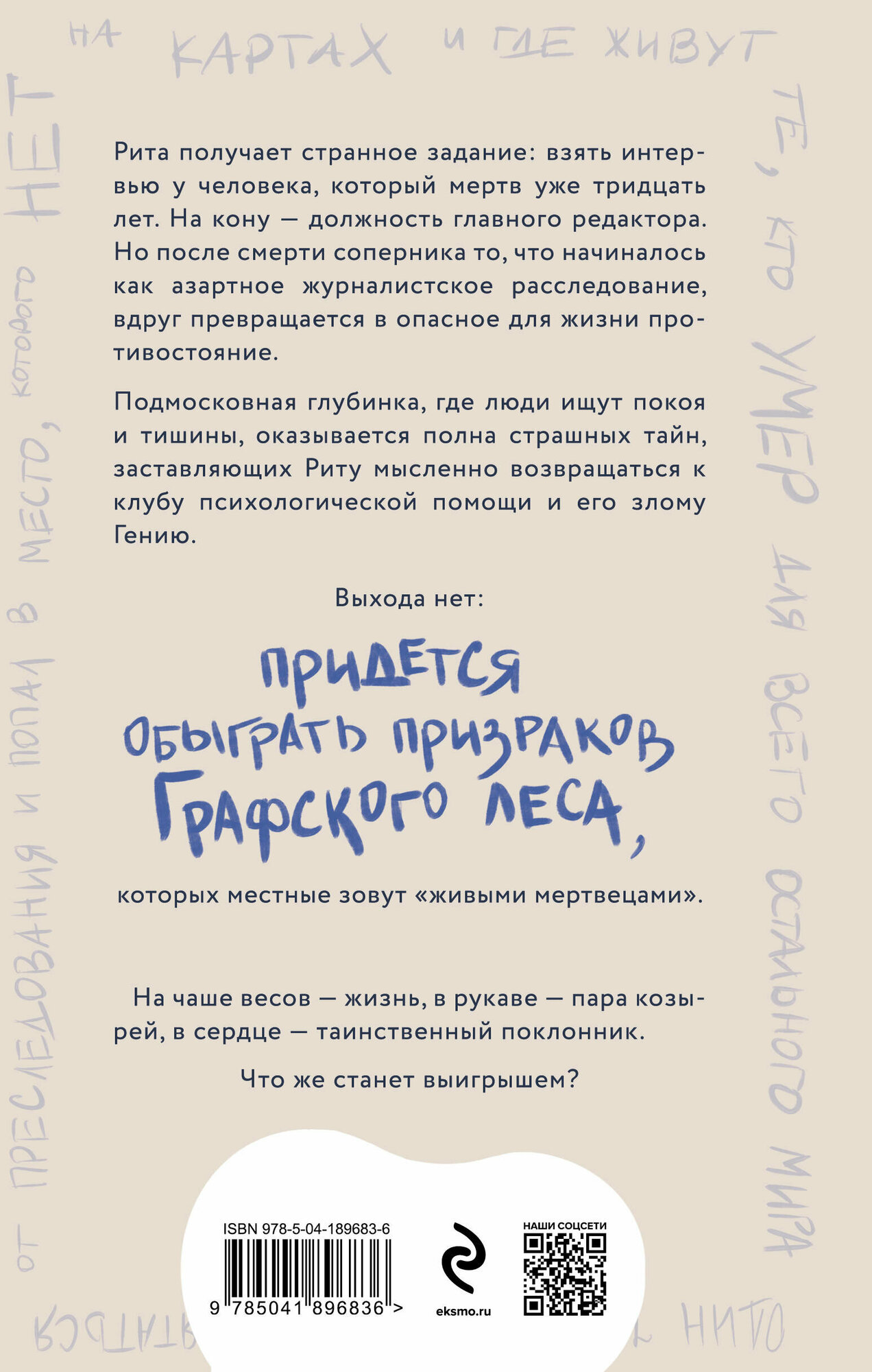 Подмосковная глубинка, где люди ищут покоя и тишины, оказывается, полна страшных тайн. И пусть некоторые из них уходят корнями в события тридцатилетней давности, есть и то, что заставляет мысленно возвращаться к клубу психологической помощи и его злому Гению.