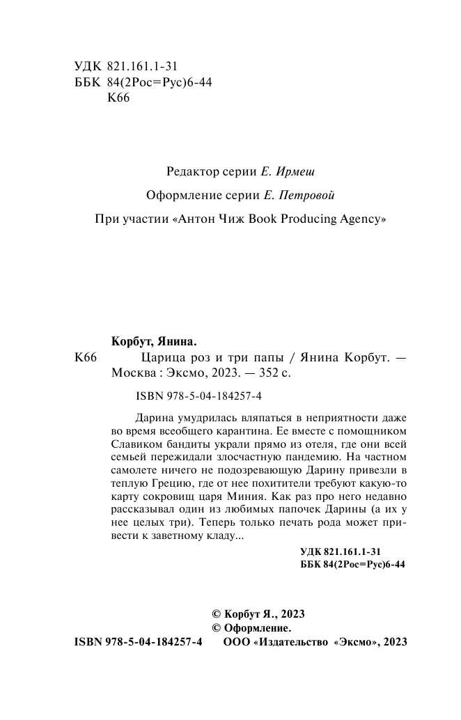 Книга: Царица роз и три папы (Корбут Янина); ООО "Издательство "Эксмо", 2023