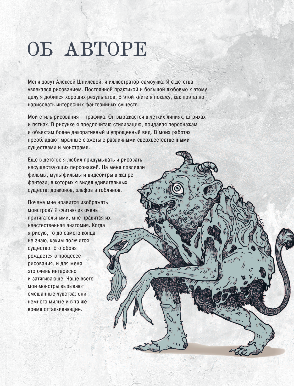 Первое руководство по рисованию стиле темного фэнтези! Погрузитесь в мрачную и манящую атмосферу монстров с помощью этой книги! Вооружайтесь любимыми арт-материалами и отправляйтесь в увлекательное путешествие по фантастическим вселенным!
