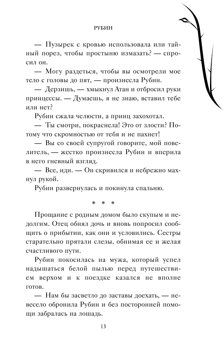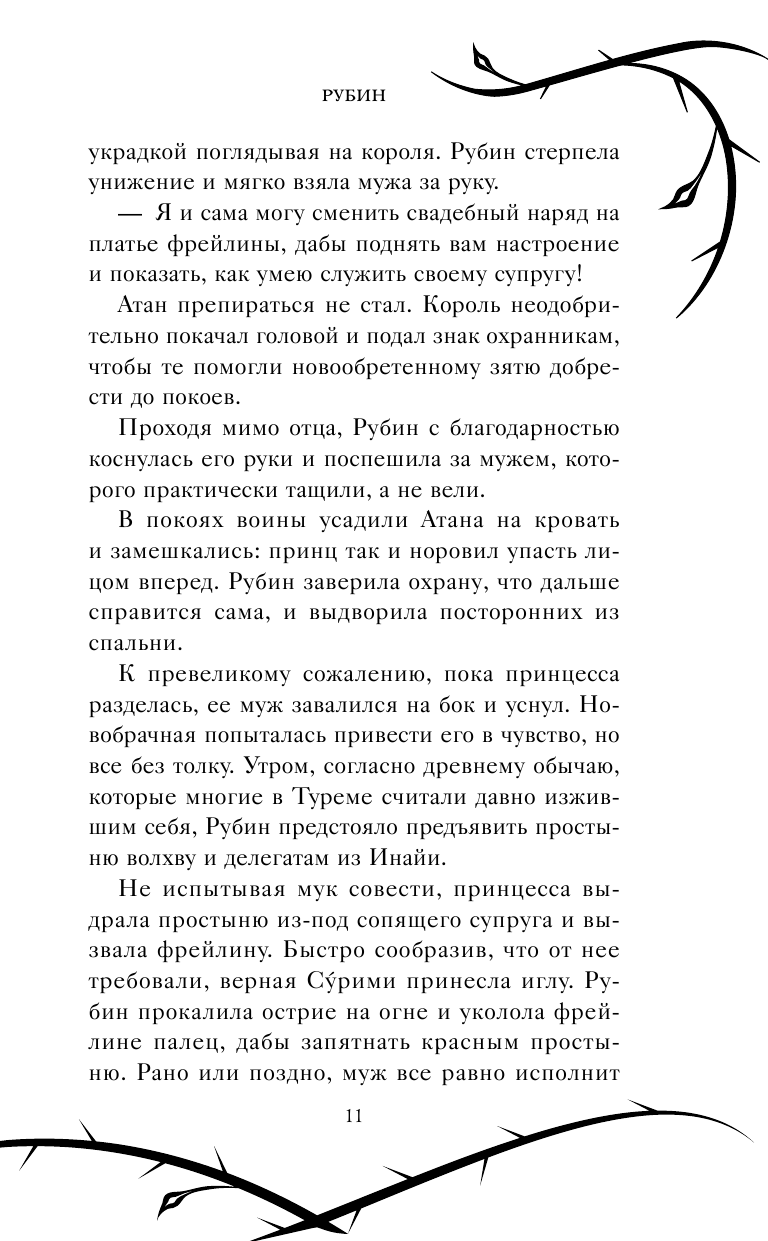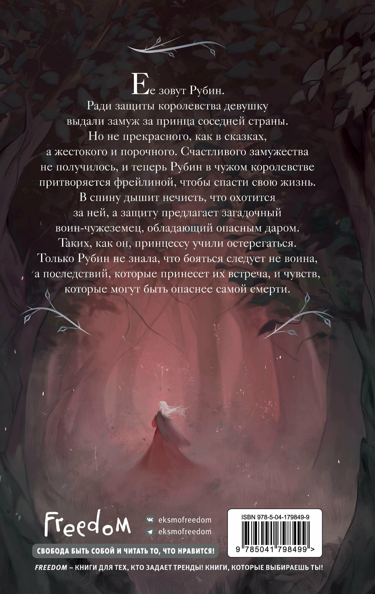 Ее зовут Рубин. Ради защиты королевства девушку выдали замуж за принца соседней страны. Но не прекрасного, как в сказках, а жестокого и порочного. Счастливого замужества не получилось, и теперь Рубин в чужом королевстве притворяется фрейлиной, чтобы спасти свою жизнь. В спину дышит нечисть, что охотится за ней, а защиту предлагает загадочный воин-чужеземец, обладающий опасным даром. Таких, как он, принцессу учили остерегаться. Только Рубин не знала, что бояться следует не воина, а последствий, которые принесет их встреча, и чувств, которые могут быть опаснее самой смерти.