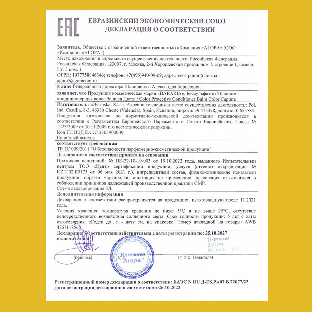 Бальзам-кондиционер для волос Babaria Защита цвета бессульфатный 200мл