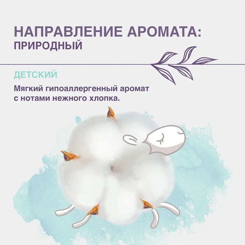 Кондиционер для смягчения, облечения процесса глажки, придания антистатического эффекта, ароматизации изделий из всех видов тканей, в том числе детского белья. Подходит для использования с первых дней жизни. Гипоаллергенно.