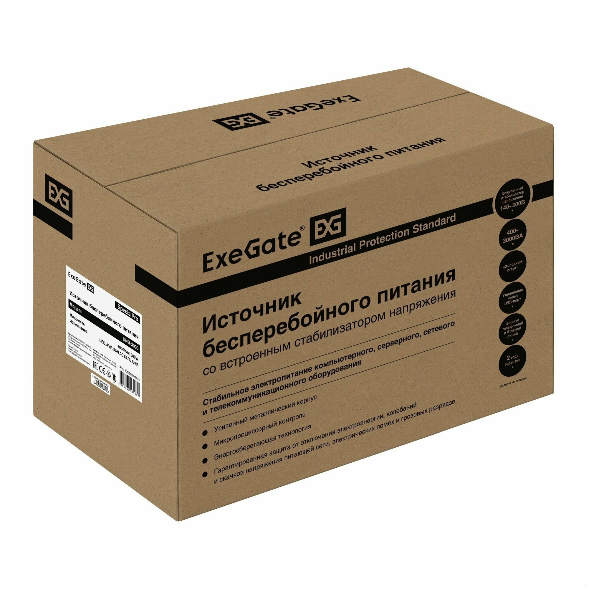 Источник бесперебойного питания Exegate EX292614RUS 3000VA/1800WLED AVR3*Schuko+2*C13RJ45/11USB мета SpecialPro UNB-3000.LED.AVR.3SH.2C13.RJ.USB