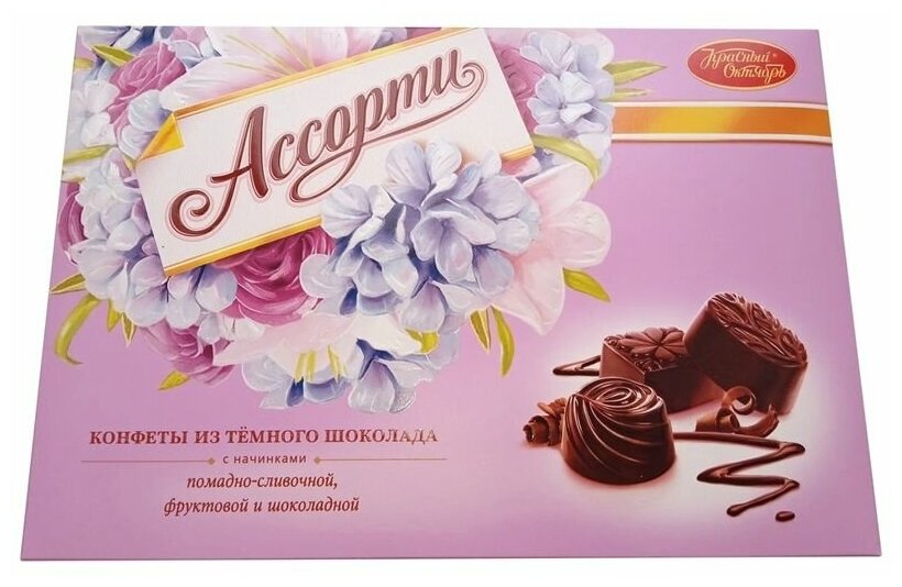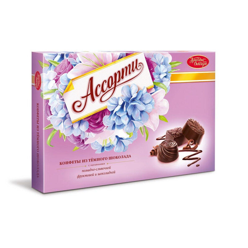 Оригинальный набор конфет из темного шоколада от известного бренда Красный Октябрь. Под слоем настоящего темного шоколада нежная помадно-сливочная, яркая фруктовая и насыщенная шоколадная начинки. Для истинных ценителей вкуса и качества.