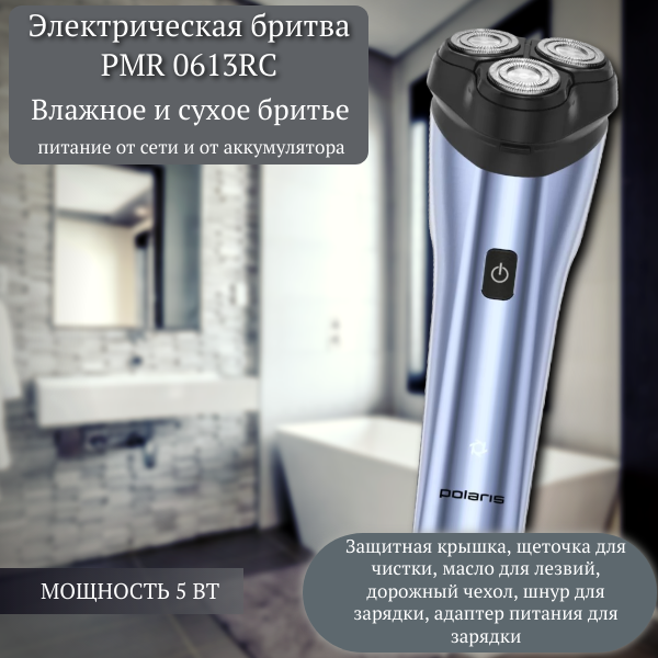 бритва электрическая POLARIS PMR0613RC от аккумулятора PMR 0613RC