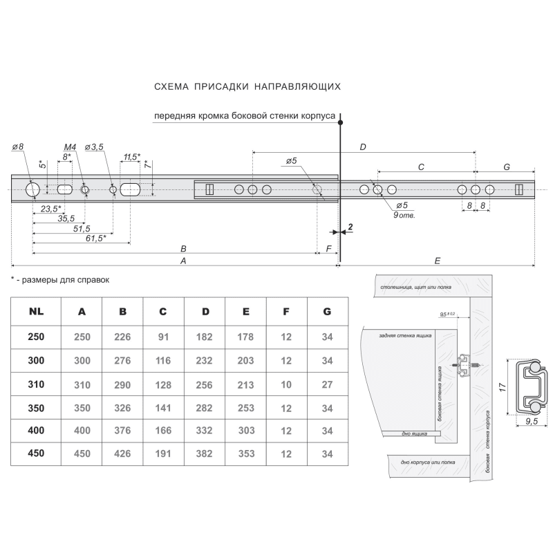 Направляющая шариковая неполного выдвижения 400 мм Boyard