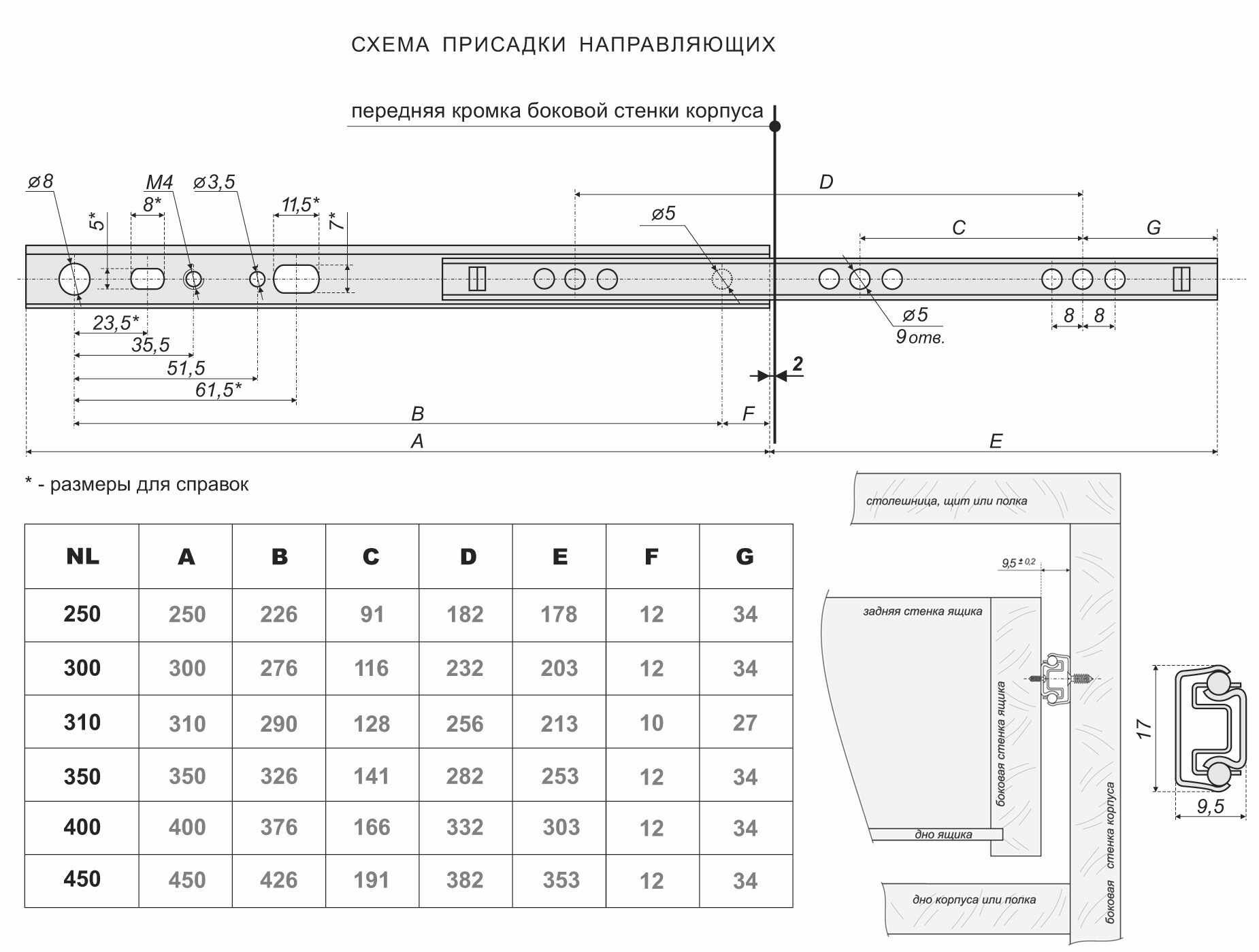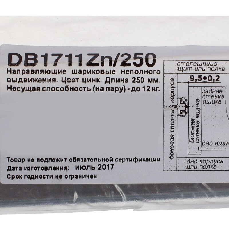 Направляющая шариковая неполного выдвижения 250 мм Boyard