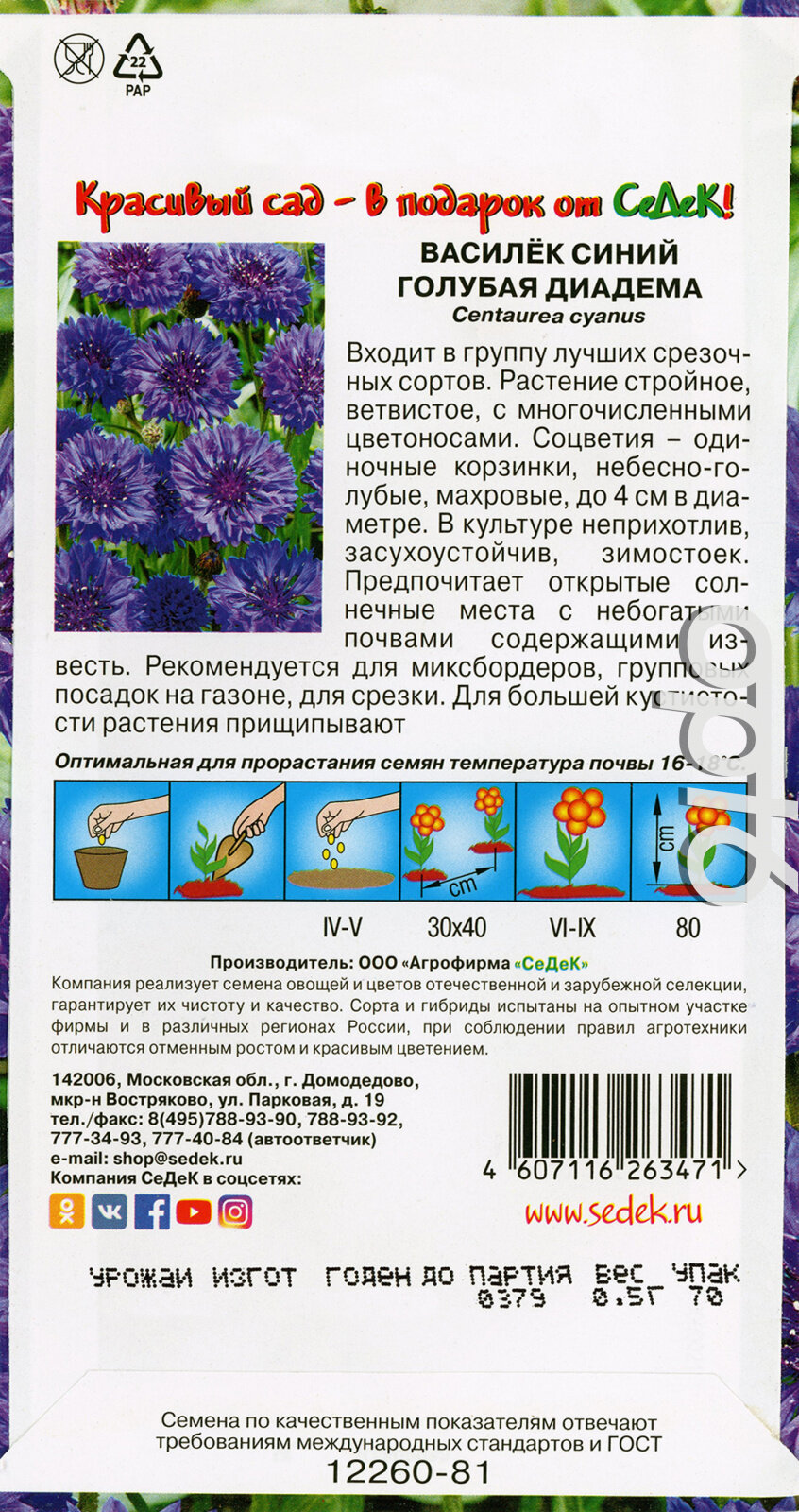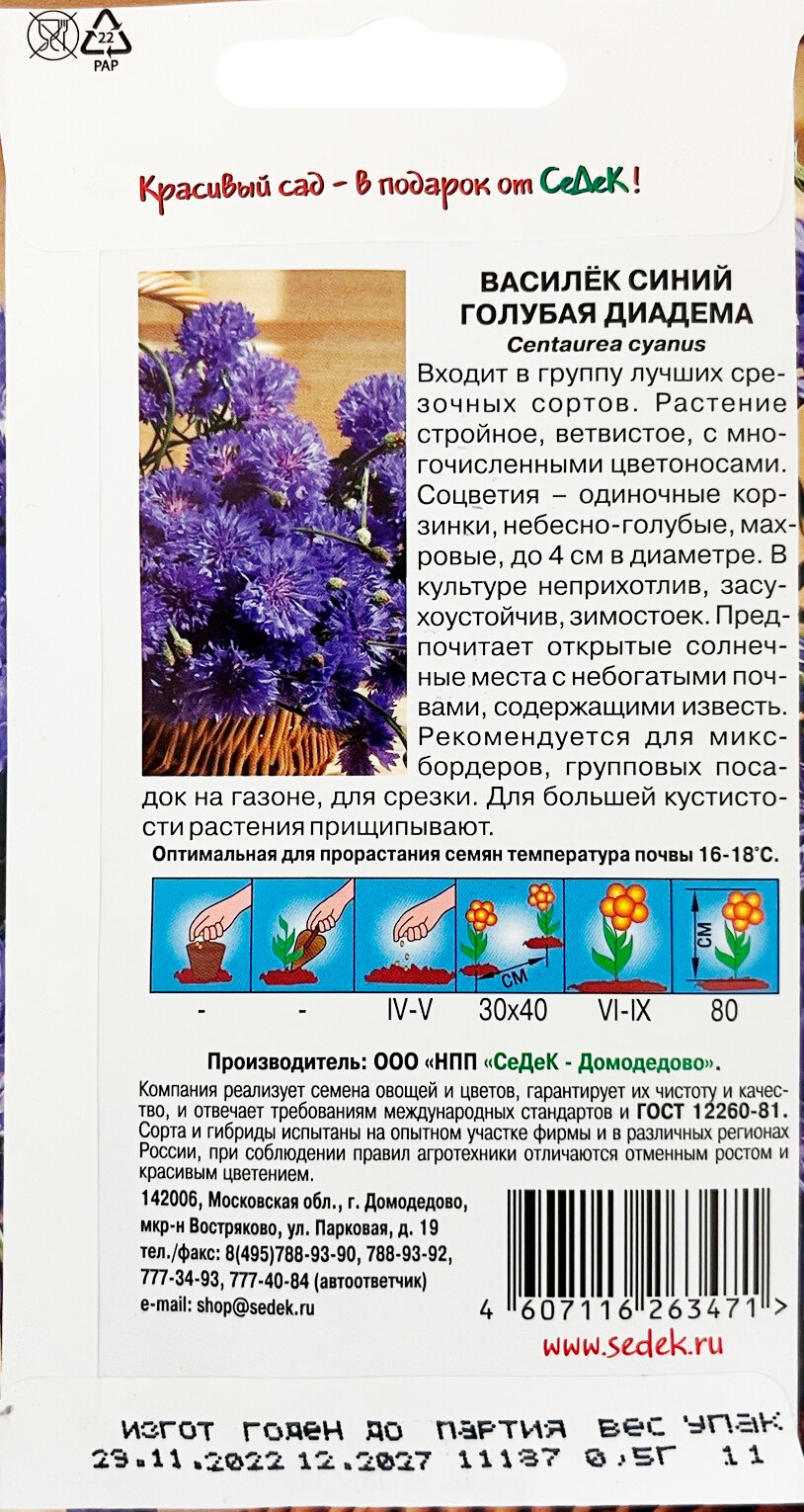 Сервис сравнения цен СкидкаГИД предлагает сравнить цены на товар «Василек Голубая Диадема СеДек»