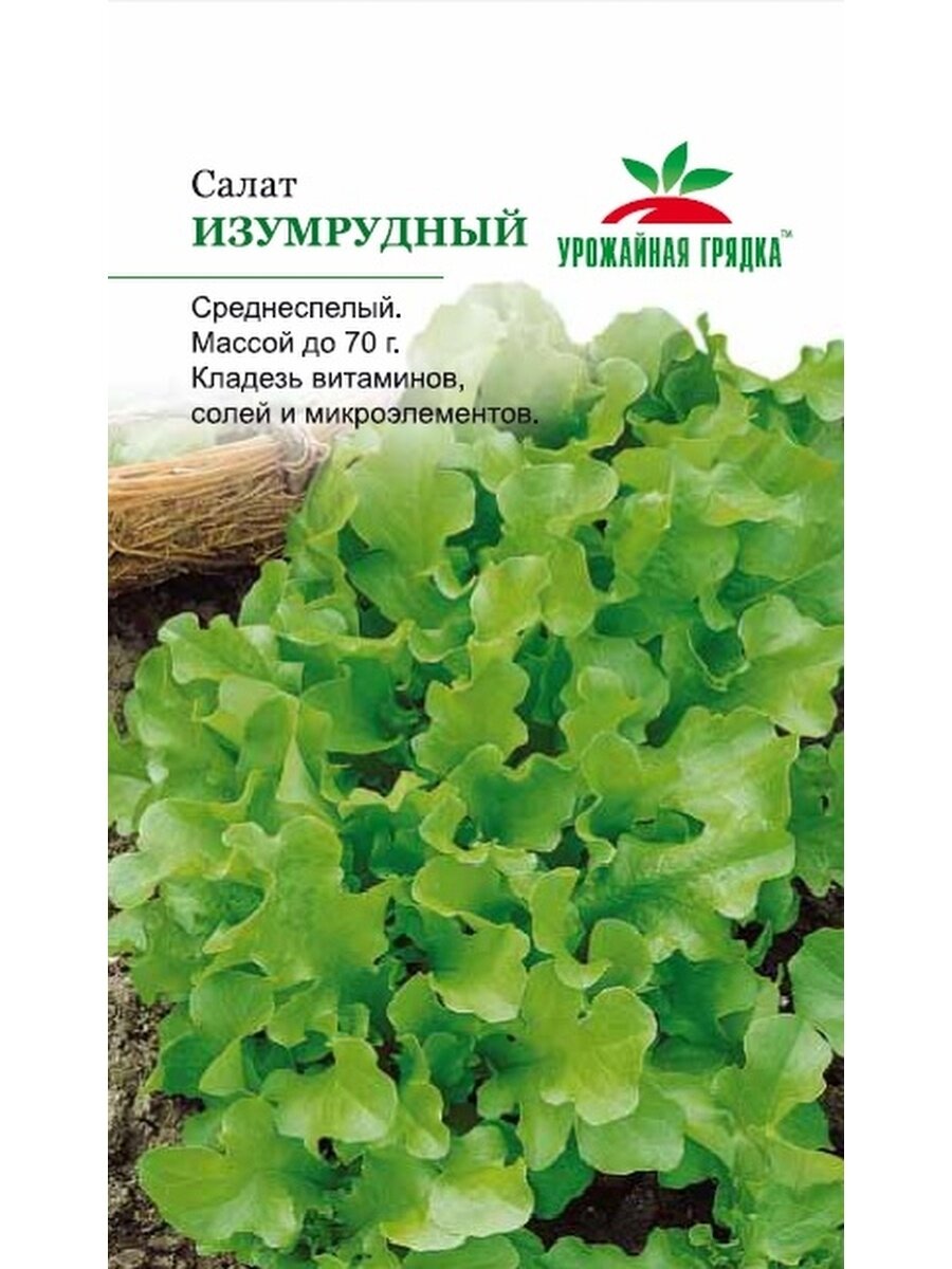 Среднеспелый сорт (период от массовых всходов до начала технической спелости 50-60 дней) листового салата. Растение среднерослое, розетка листьев полуприподнятая. Лист темно-зеленый, средней толщины, глянцевый, средне-пузырчатый, мякоть маслянистая. Масса одного растения 60-70 г.
