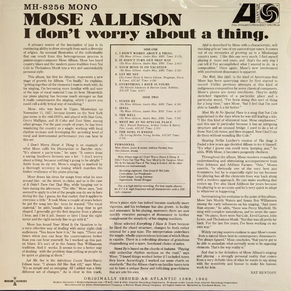 Модель: Mose Allison - I Don't Worry About A Thing (Black Vinyl LP)