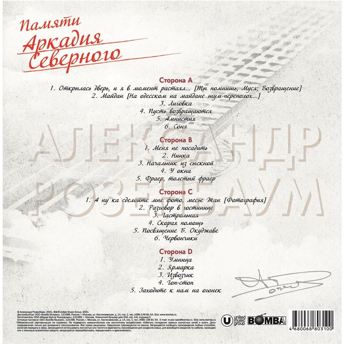 Авторская песня Bomba Music РОЗЕНБАУМ АЛЕКСАНДР - Памяти Аркадия Северного (2LP)
