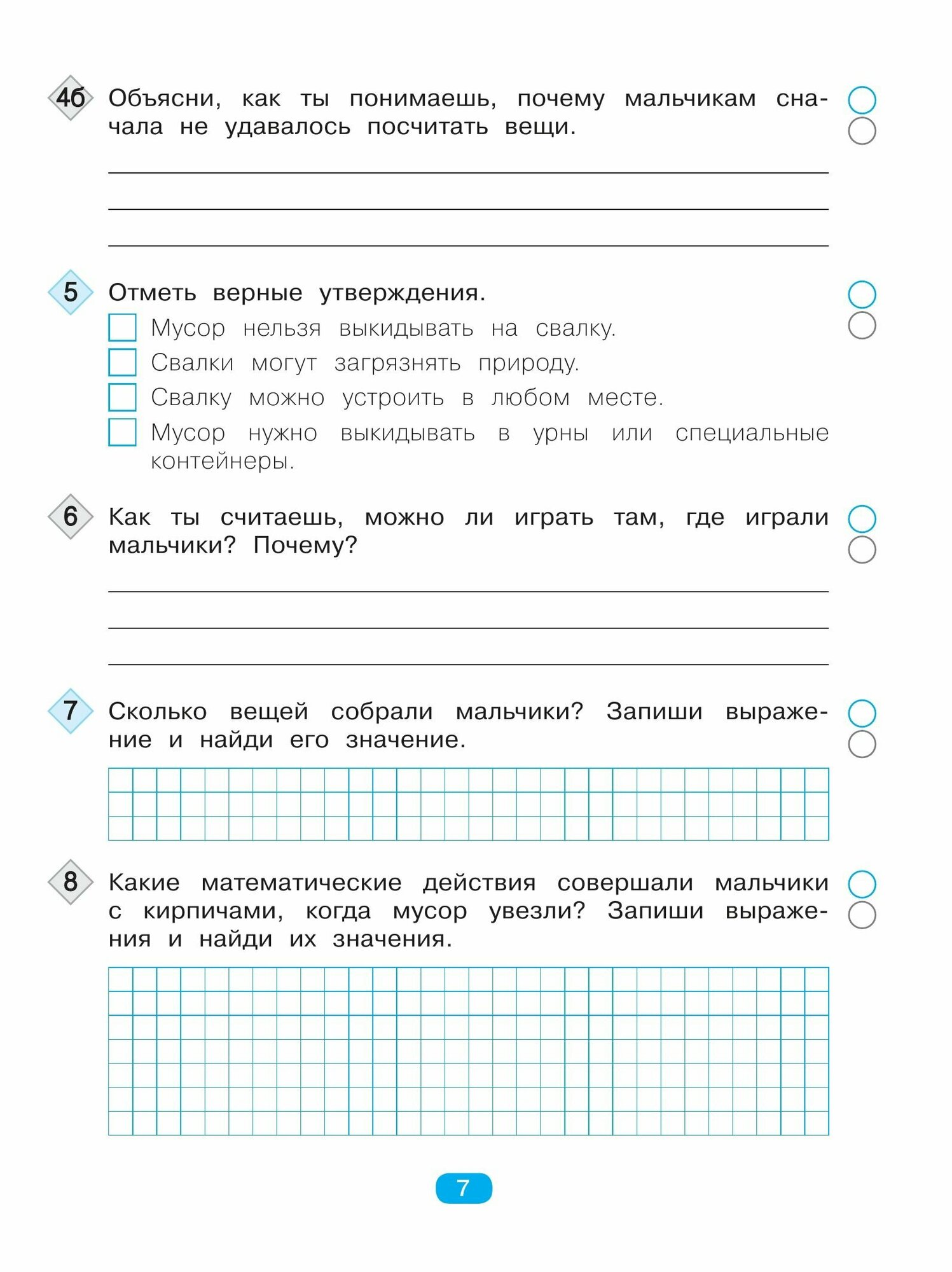 Диагностические комплексные работы построены на основе единого текста и включают в себя задания по русскому языку, литературному чтению, математике и окружающему миру. Они направлены на установление уровня достижения обучающимися предметных и личностных результатов, сформированности у школьников метапредметных УУД, навыков работы с текстом, умения читать текст, понимать прочитанное, выполнять инструкции, извлекать и интерпретировать информацию, использовать затекстовые знания.