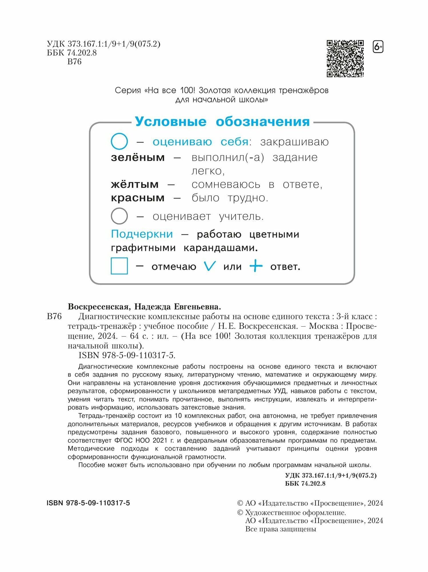 Диагностические комплексные работы на основе единого текста. 3 класс. Тетрадь - тренажер (Воскресенская Надежда Евгеньевна); Просвещение, 2024