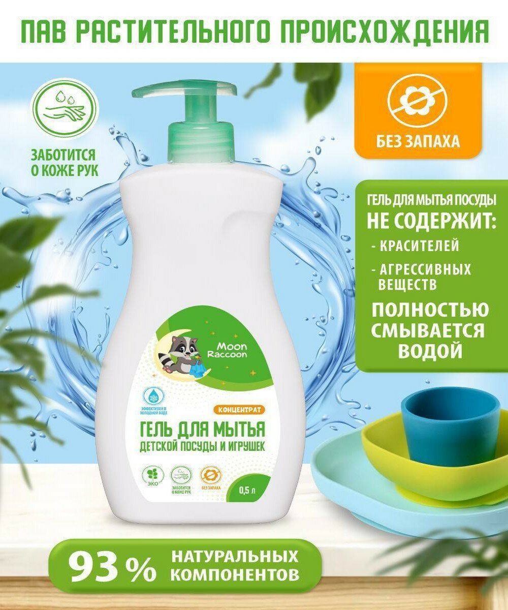 Сервис сравнения цен СкидкаГИД предлагает сравнить цены на товар «Гель для мытья детской посуды и игрушек Moon Raccoon Premium Care концентрат 500мл»